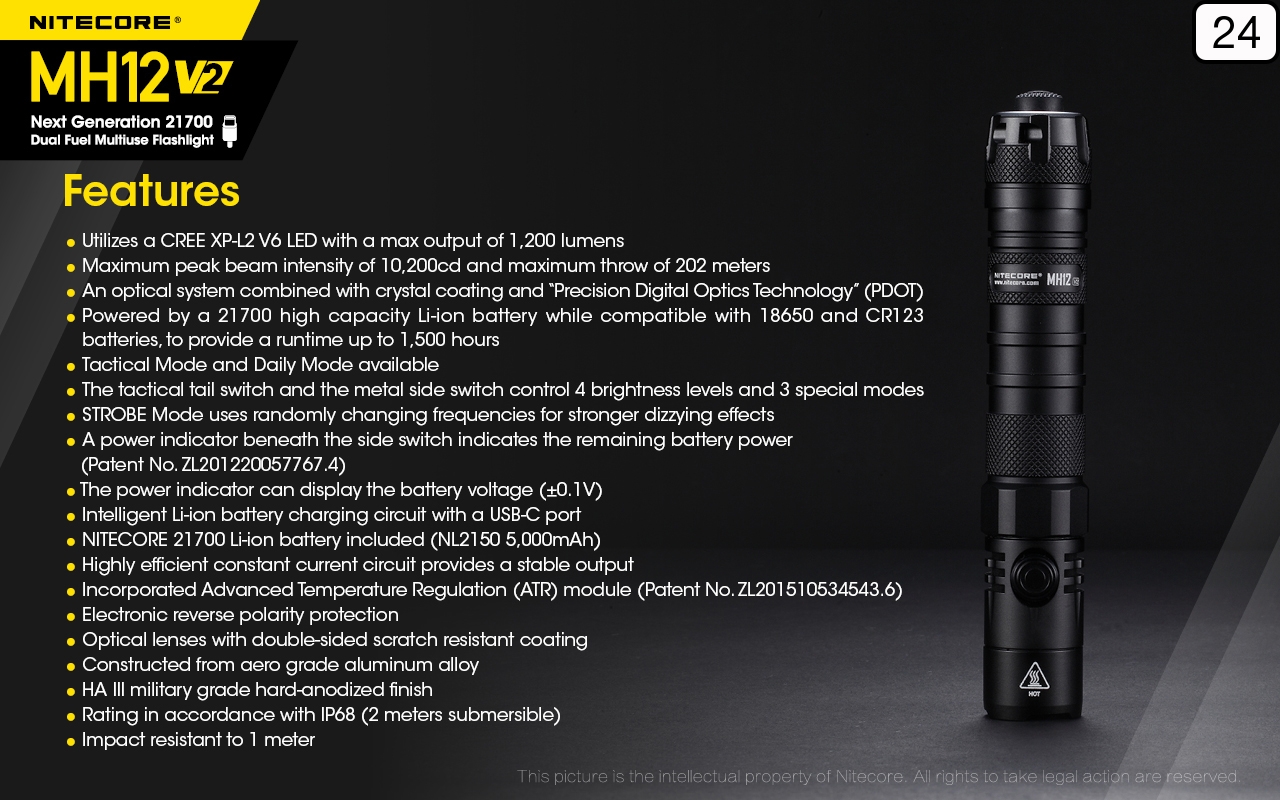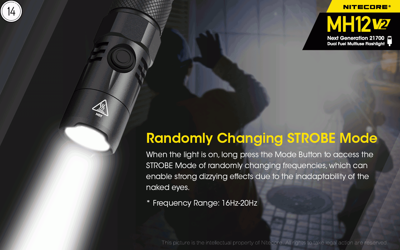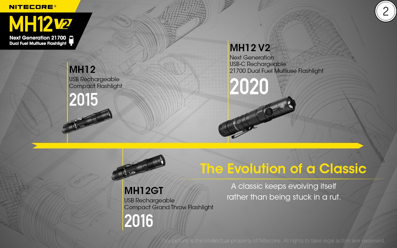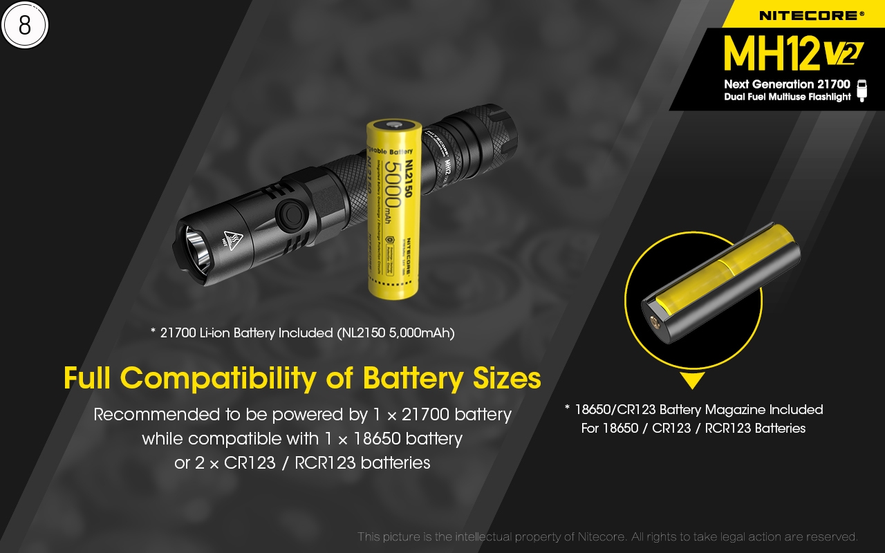 Ο φακός MH12V2 της Nitecore, είναι ένας εξελιγμένος φακός Led, νέας γενιάς για χρήση τόσο μπαταριών 21700 όσο και μπαταριών 18650, CR123, RCR123 ώστε ο χρήστης να μπορεί να επιλέγει την τροφοδοσία κατά περίπτωση.
