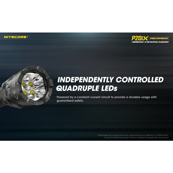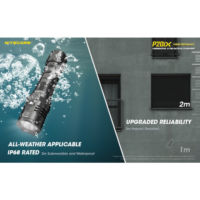 Σας προσφέρει ανίκητη τετραπύρινη απόδοση, με μέγιστη ισχύ φωτισμού τα 4000 Lumens και με τα τέσσερα LED CREE XP-L2 V6 ο P20ix έχει μέγιστη ισχύ φωτισμού 4000 Lumens, με μέγιστη απόσταση τα 221 μέτρα και μέγιστη ένταση δέσμης που φθάνει τα 12200 κεριά! Είναι ιδανικός για σώματα ασφαλείας, επιθετικές επιχειρήσεις, αυτοάμυνα, έρευνα, διάσωση και περιπολίες. Ο P20ix είναι ένα φακός για όλες τις καιρικές συνθήκες, βαθμολογημένος με IP68 έχει αντοχή στο νερό μέχρι και 2 μέτρα βάθος και σε πτώσεις έως και από 2 μέτρα ύψος.