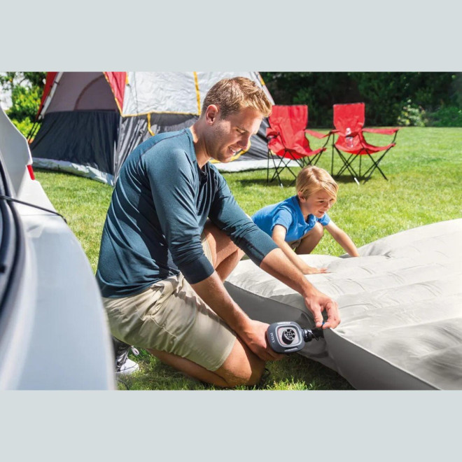 Αυτή η ηλεκτρική τρόμπα λειτουργεί με ρεύμα 220–240V, προσφέροντας σταθερή ροή αέρα, ενώ χάρη στα 3 εναλλάξιμα ακροφύσια που περιλαμβάνονται, είναι συμβατή με τις περισσότερες βαλβίδες φουσκωτών. Με αυτήν την αντλία, το μόνο που χρειάζεται είναι μια πρίζα και σε λίγα δευτερόλεπτα είστε έτοιμοι!