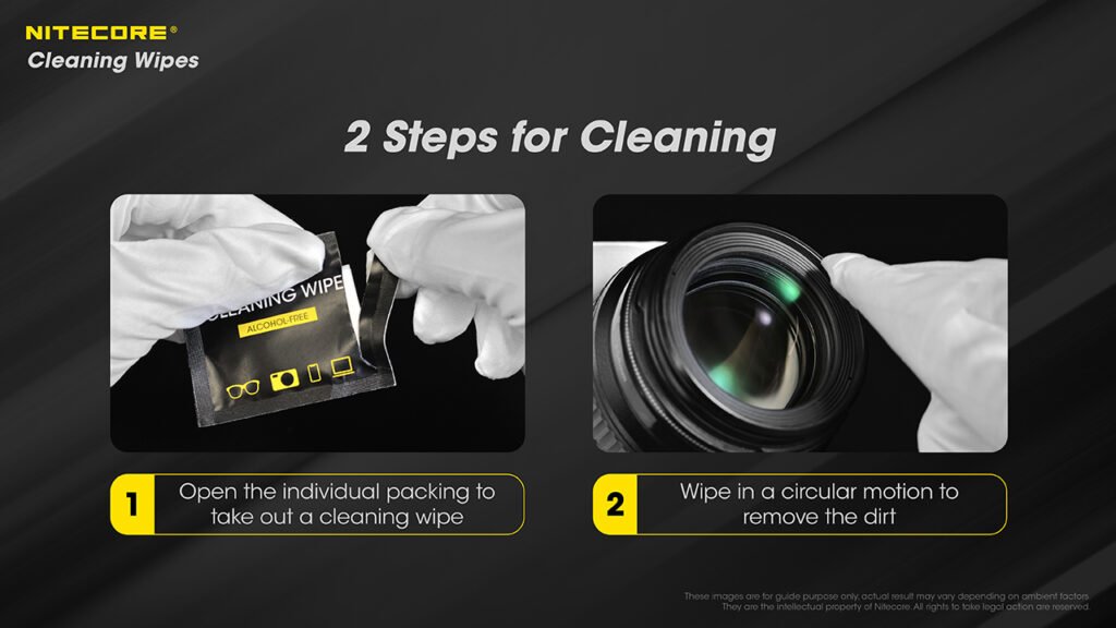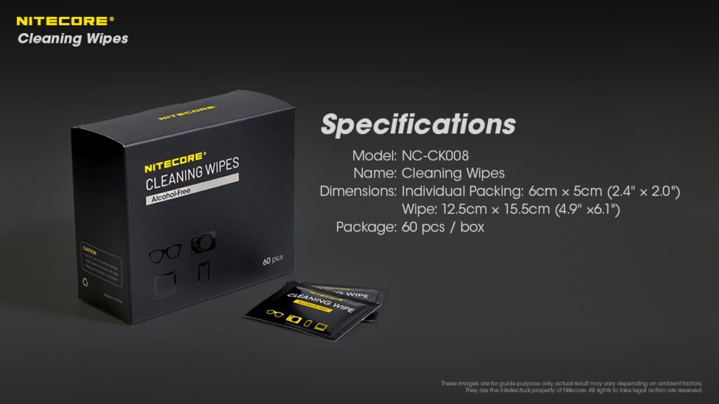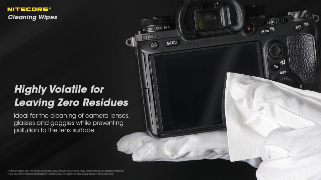 Τα πανάκια καθαρισμού NC-CK008 Cleaning Wipes της Nitecore αποτελούν την ιδανική λύση για τον καθαρισμό των αγαπημένων σας αντικειμένων όπως γυαλιά, οθόνες και φωτογραφικές μηχανές.