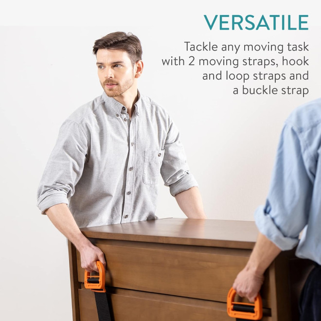 Οι ρυθμιζόμενοι ιμάντες επιτρέπουν την προσαρμογή τους σε διάφορα μεγέθη αντικειμένων, ενώ τα παρεχόμενα αξεσουάρ γάντζου, βρόχου και πόρπης επιτρέπουν εύκολη και ασφαλή στήριξη. Με κατασκευή βαρέως τύπου και ενισχυμένη ραφή, αυτοί οι ιμάντες κάνουν τη μετακόμιση ευκολότερη, αλλά και πιο ασφαλή.