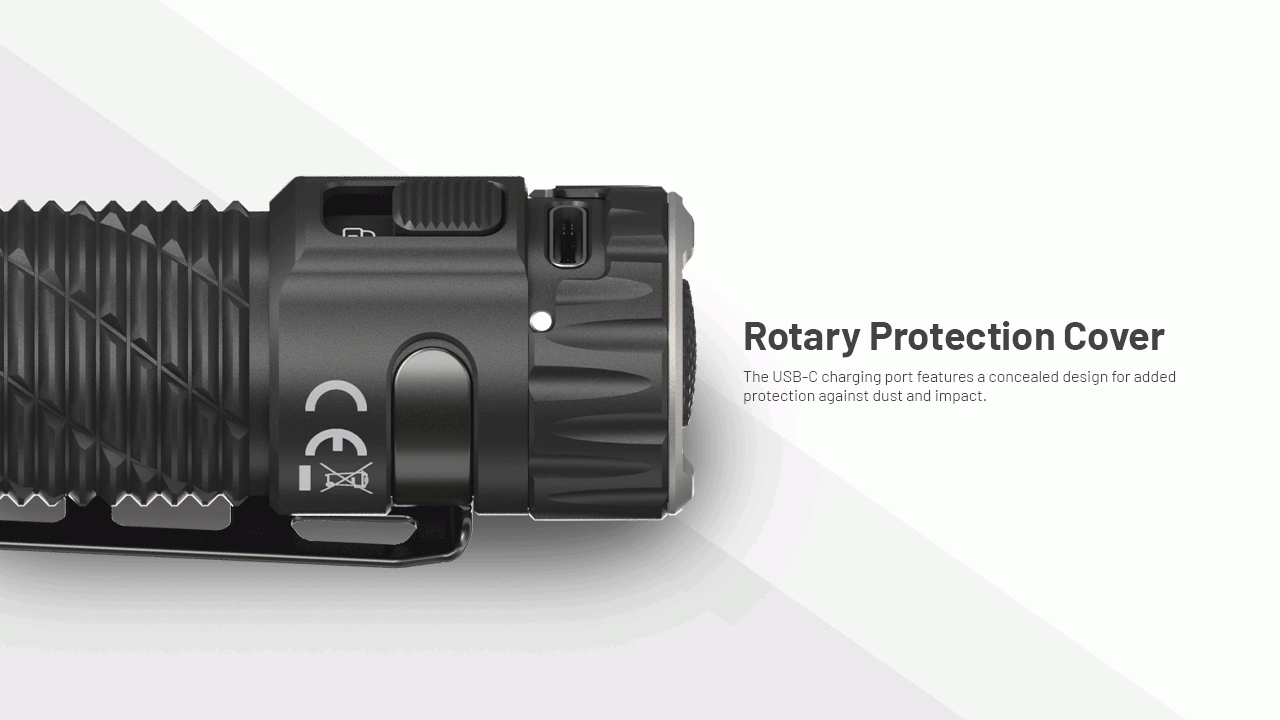 Διαθέτει διαισθητική λειτουργία με επιχειρησιακό διακόπτη ουράς, δηλαδή με μισό πάτημα, έχουμε τη ρύθμιση επιπέδων φωτεινότητας και τη λειτουργία επιχειρησιακής αναζήτησης, ενώ με το πλήρες πάτημα, έχουμε την ενεργοποίηση, την απενεργοποίηση και το Lumin Shield™. Είναι σχεδιασμένο με περιστροφικό κάλυμμα προστασίας, όπου η θύρα φόρτισης USB-C διαθέτει κρυφό σχεδιασμό για πρόσθετη προστασία από σκόνη και χτυπήματα.