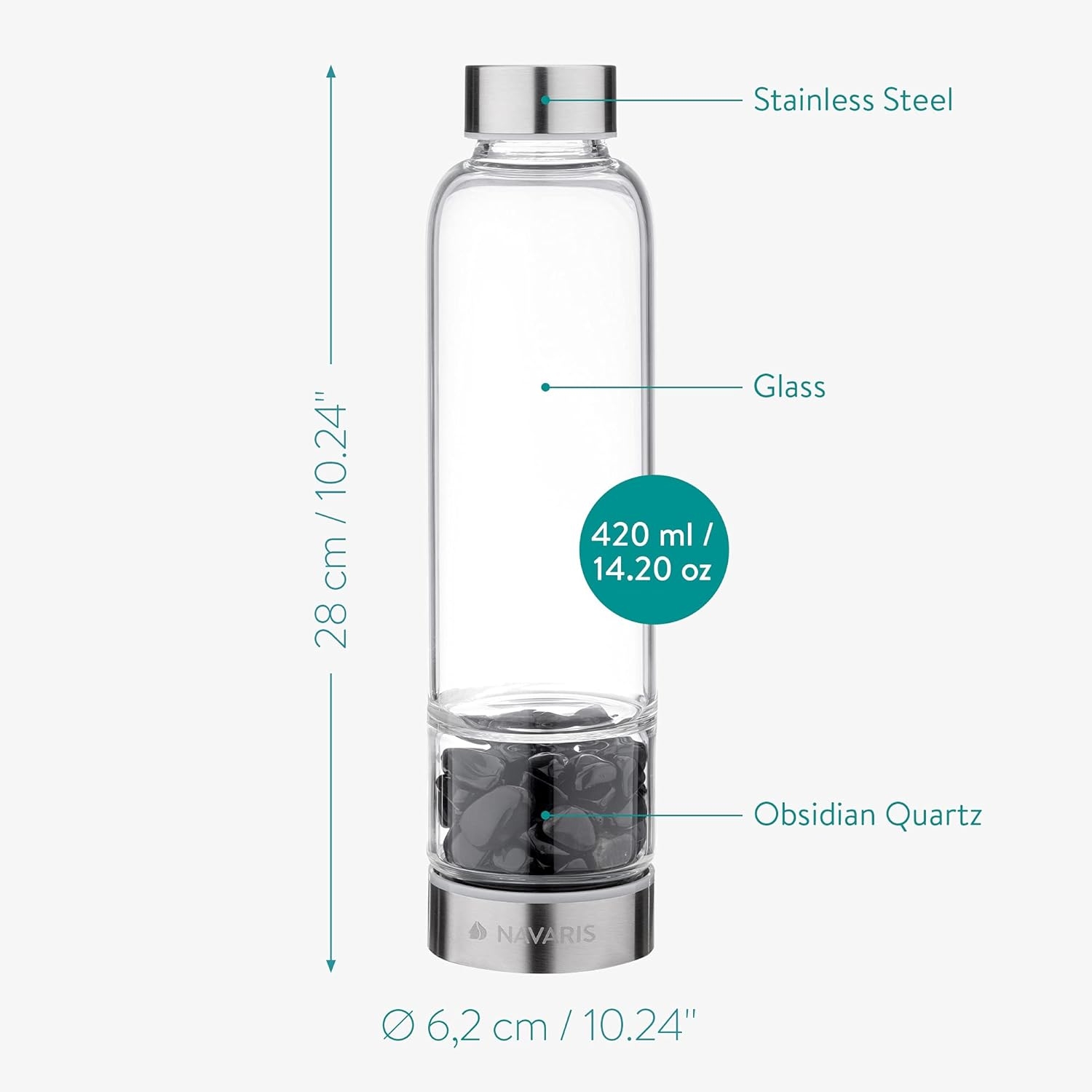 Βεβαιωθείτε ότι μένετε πάντα ενυδατωμένοι όπου κι αν βρίσκεστε, με το μπουκάλι νερού της Navaris, που διαθέτει πέτρες από φυσικό Οψιδιανό. Προσθέστε την εκπληκτική ομορφιά των πραγματικών πολύτιμων λίθων στην καθημερινή σας ρουτίνα. Ο καφές, το τσάι, ή οι αγαπημένοι σας χυμοί μπορούν να μεταφερθούν με ασφάλεια με αυτό το μοναδικό μπουκάλι νέρου.