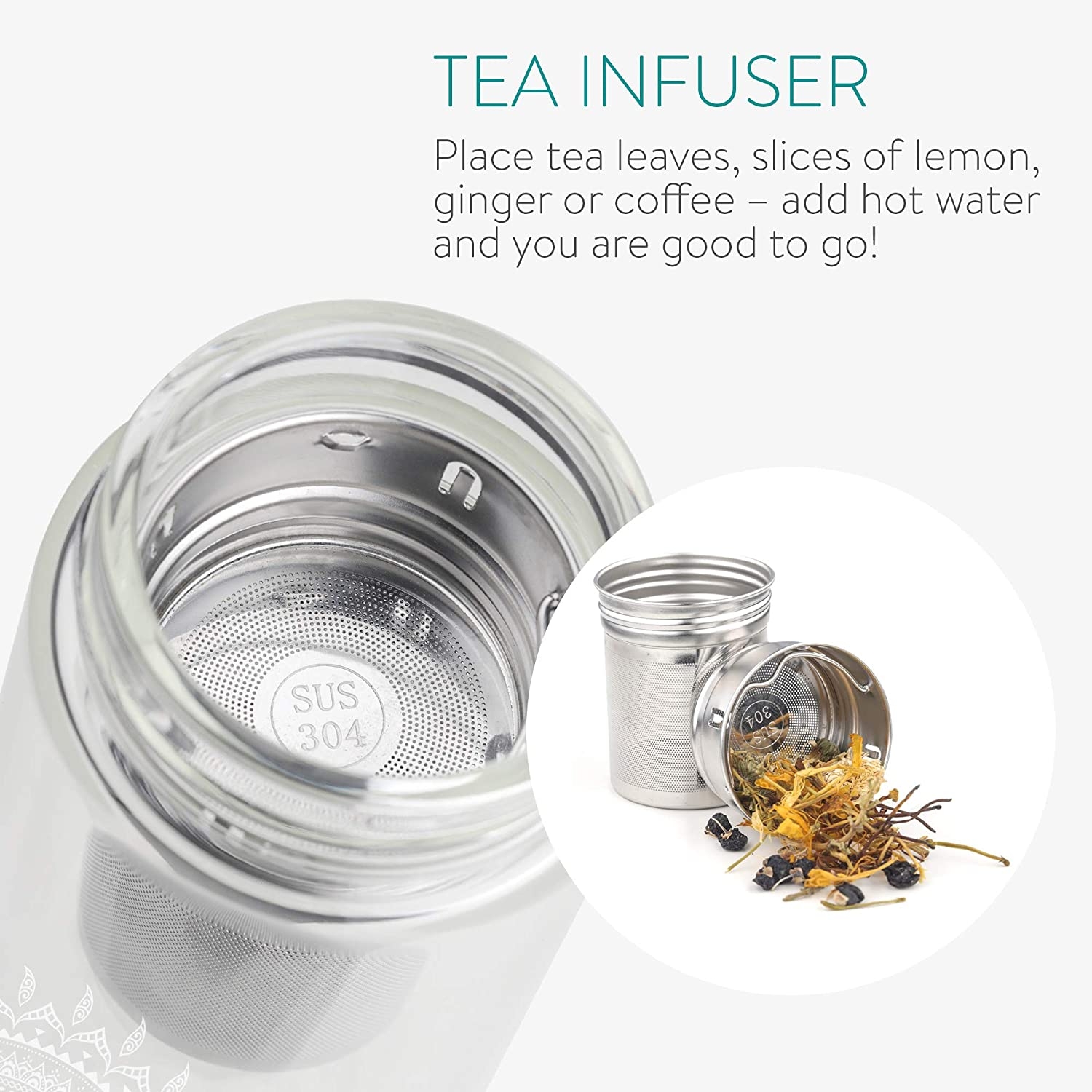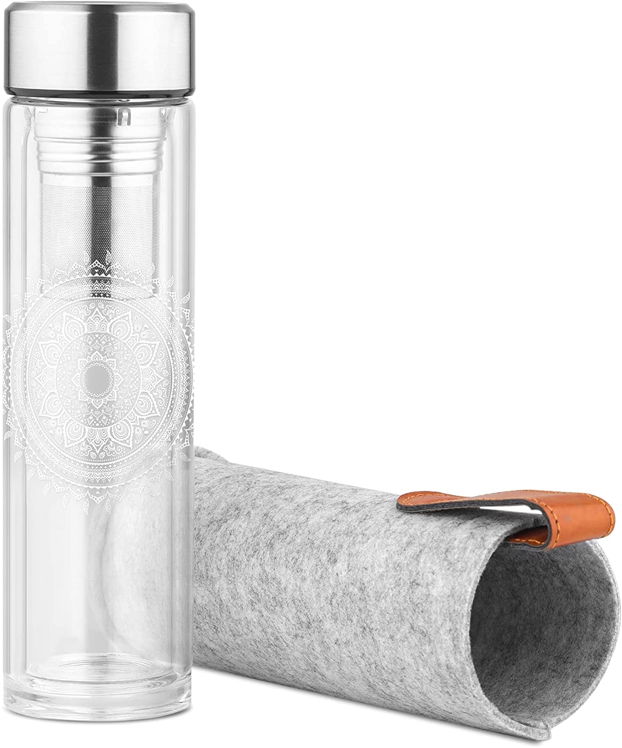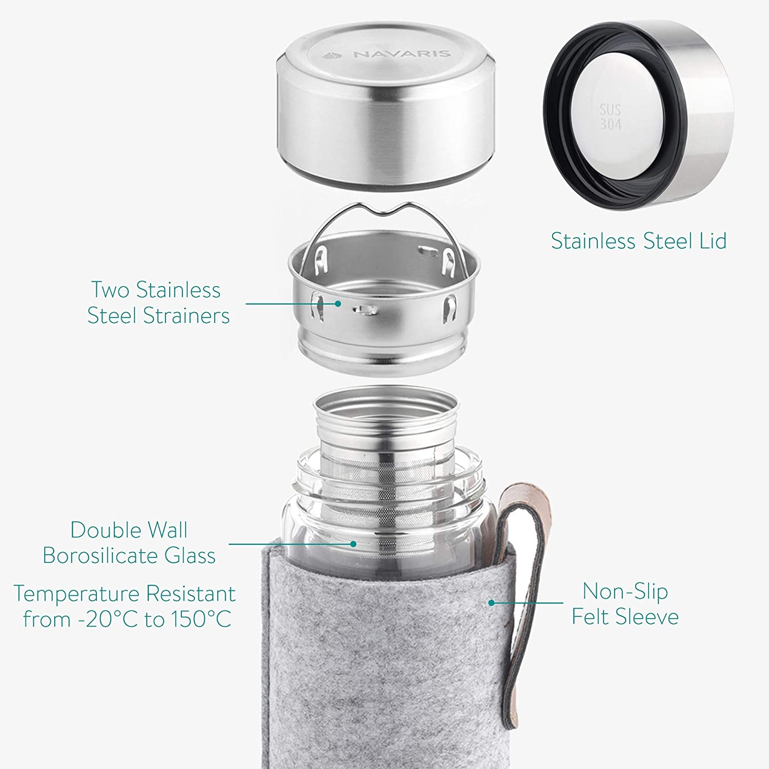 Τσάι, νερό ή καφές, πάρτε μαζί σας τα αγαπημένα σας ροφήματα με αυτό το κομψό μπουκάλι της Navaris, το οποίο διαθέτει και θήκη μεταφοράς. Είναι επίσης ιδανικό για να παρασκευάζετε τσάι στο γραφείο, καθώς διαθέτει ειδικό σουρωτήρι.