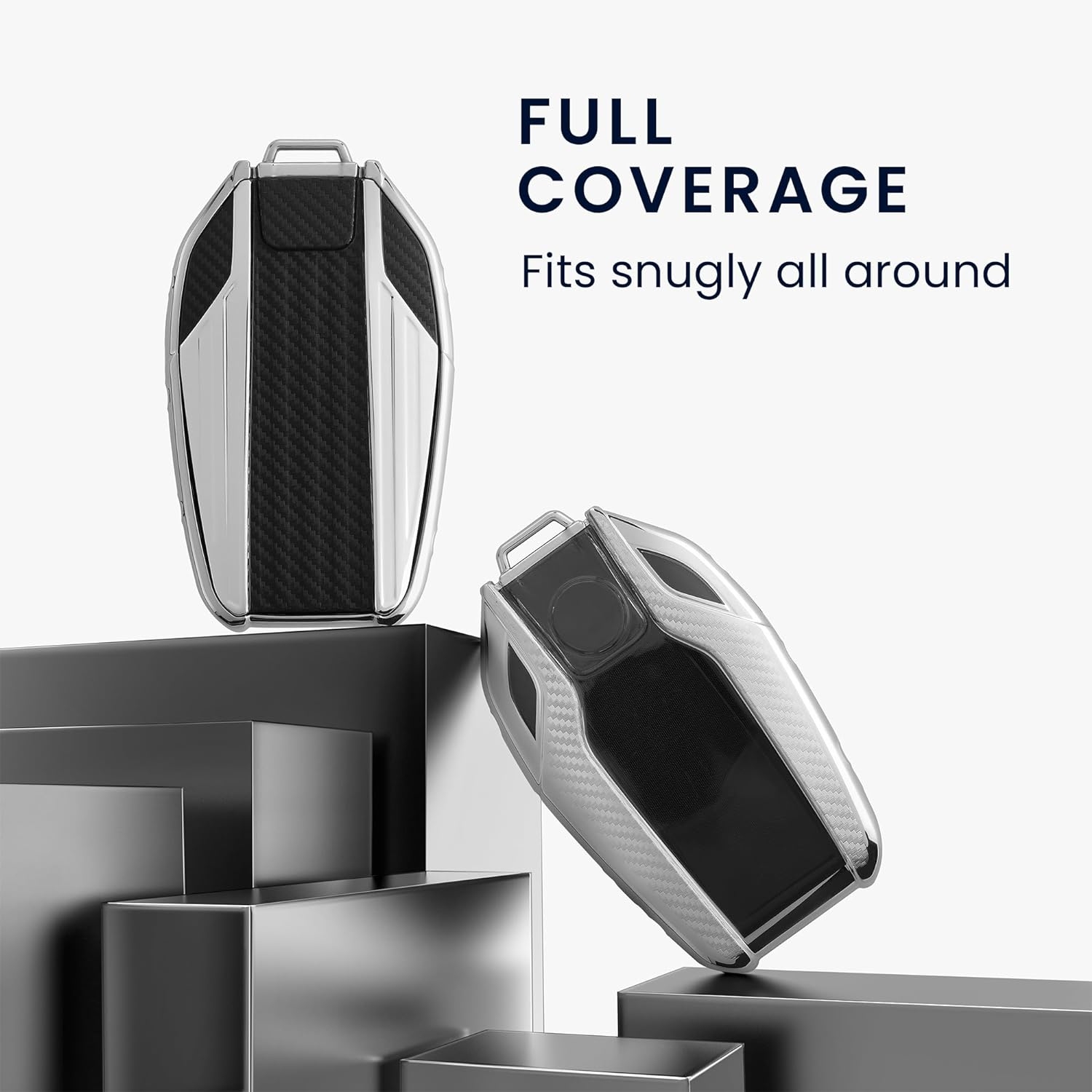 KW Θήκη Κλειδιού BMW - Carbon Σιλικόνη με Έγχρωμο Πλαίσιο & Κουμπιά - 3 Κουμπιά - Display Key - Silver High Gloss (61928.94)