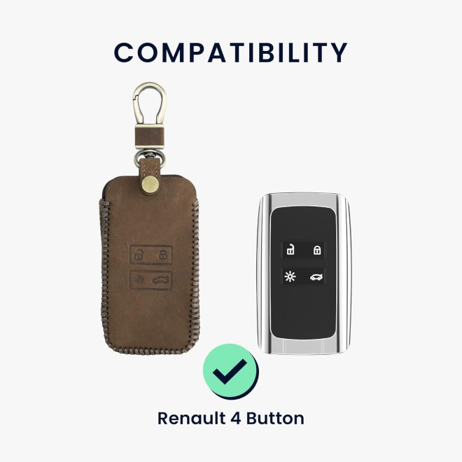 H θήκη κλειδιού αυτοκινήτου της KW είναι ειδικά σχεδιασμένη για την προστασία του κλειδιού του αγαπημένου σας Renault / Dacia! Κατασκευασμένη από υψηλής ποιότητας γνήσιο δέρμα, αυτή η θήκη το αγκαλιάζει με ακρίβεια, προστατεύοντάς το πλήρως από φθορές, γρατζουνιές, σκόνη και χτυπήματα που μπορεί να προκύψουν από την καθημερινή χρήση.