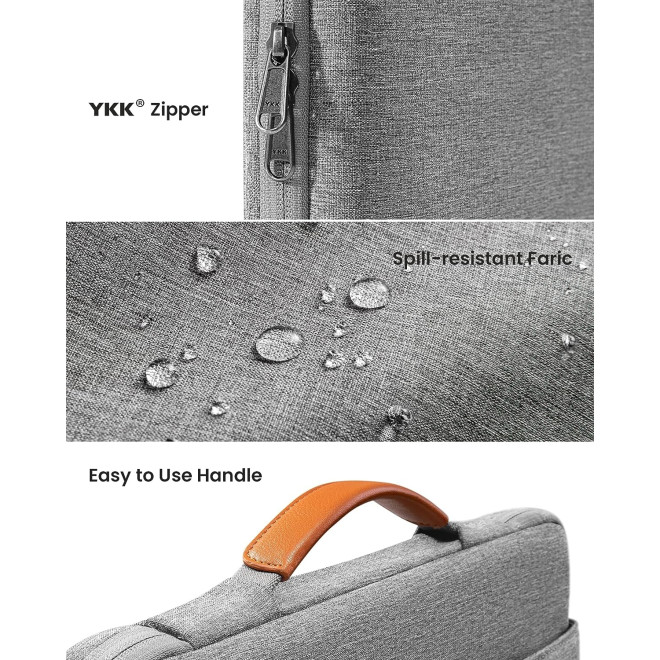 Με εύκολο στη χρήση φερμουάρ YKK, που δεν θα κολλήσει ή θα πιαστεί κατά το άνοιγμα ή το κλείσιμο. Η θήκη διαθέτει επίσης μια παχιά προστατευτική ράχη για την αποφυγή γρατσουνιών και τη διασφάλιση διαχωρισμού μεταξύ του φερμουάρ και του υπολογιστή σας. Το φερμουάρ ανοίγει σε 3 πλευρές, επιτρέποντας εύκολη είσοδο.