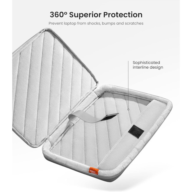 Διαθέτει εξαιρετικά παχύ, αλλά ελαφρύ προστατευτικό κάλυμμα για να διασφαλίσει ότι ο φορητός υπολογιστής σας θα παραμείνει ασφαλής από προσκρούσεις, βαθουλώματα και γρατζουνιές ανά πάσα στιγμή. Εκτός από το κεντρικό μέρος της θήκης που είναι για τον φορητό υπολογιστή, διαθέτει ένα δεύτερο μεγάλο μέρος με φερμουάρ για επιπλέον χώρο αποθήκευσης.