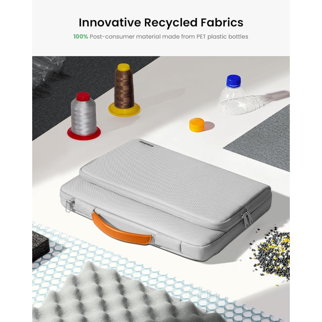 Το εσωτερικό μαξιλάρι που υπάρχει στην τσάντα, είναι ιδανικό για απορρόφηση κραδασμών,τυχαία χτυπήματα ή πτώσεις. Η υψηλής ποιότητας βελούδινη επένδυση, έχει σχεδιαστεί αποκλειστικά με γνώμονα την προστασία του αγαπημένου σας Laptop, ενώ εξωτερικά η τσάντα είναι κατασκευασμένη από ανθεκτικό ανακυκλωμένο ύφασμα και από ανακυκλωμένα πλαστικά μπουκάλια PET.