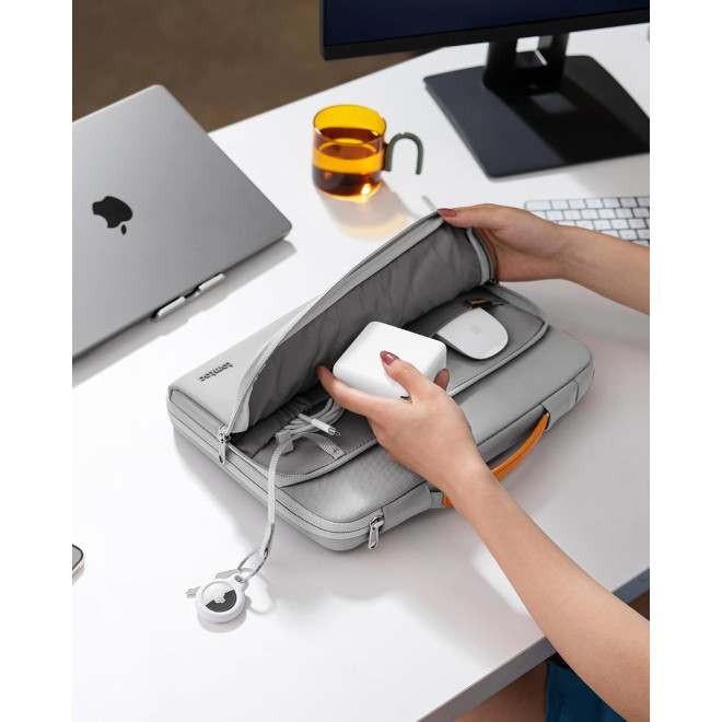 Η τσάντα laptop Defender A14 της Tomtoc έχει σχεδιαστεί για σύντομα ταξίδια, το γραφείο και τις αίθουσες συσκέψεων. Είναι η καλύτερη επιλογή για τους ταξιδιώτες, ενώ η μπροστινή τσέπη προσφέρει αρκετό χώρο για να κρατάτε εύκολα ό, τι χρειάζεστε για μια μεγάλη μέρα στο γραφείο. Επίσης, εσωτερικά διαθέτει ένα λουράκι για να κρεμάσετε το μπρελόκ με το AirTag σας.