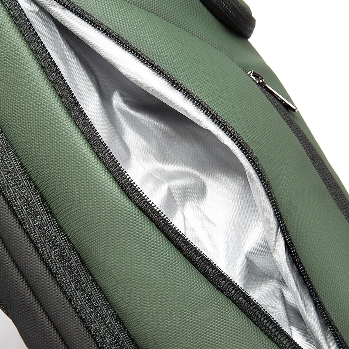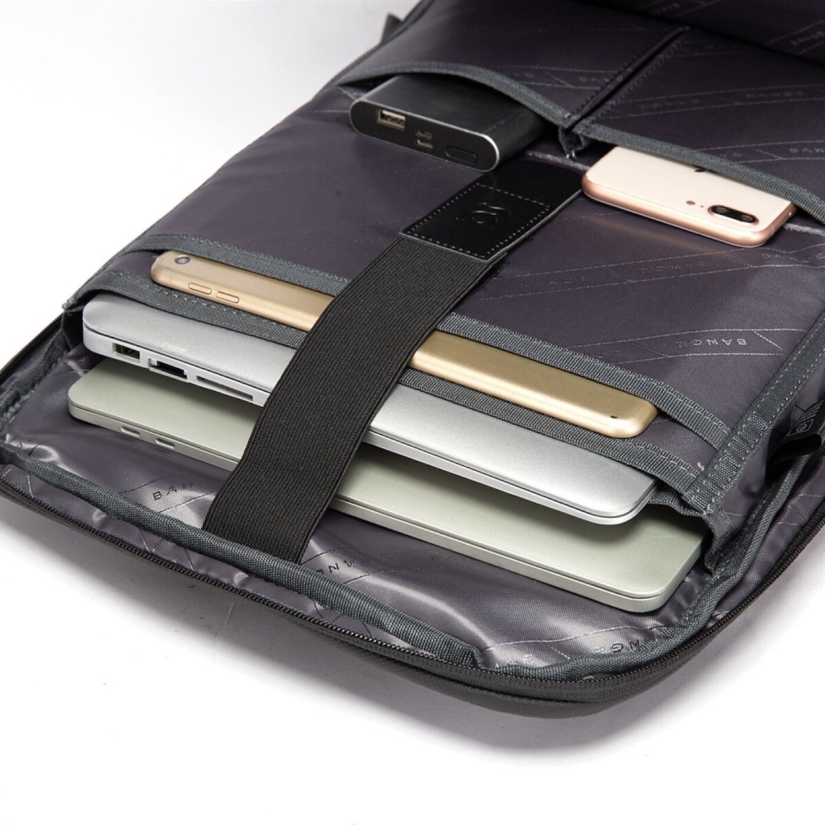 Είναι κατασκευασμένο από ανθεκτικό πολυεστερικό ύφασμα 1680D, με μεταλλικά φερμουάρ και αυτό, εξασφαλίζει την ασφαλή και μακροχρόνια χρήση. Διαθέτει ένα διαμέρισμα για ένα Macbook ή Laptop 14 ή 15.6 ιντσών και είναι εξοπλισμένο με βολικές τσέπες για τα αγαπημένα σας iPad, οι επιπλέον εσωτερικές τσέπες είναι ιδανικές για το πορτοφόλι και το τηλέφωνό σας.