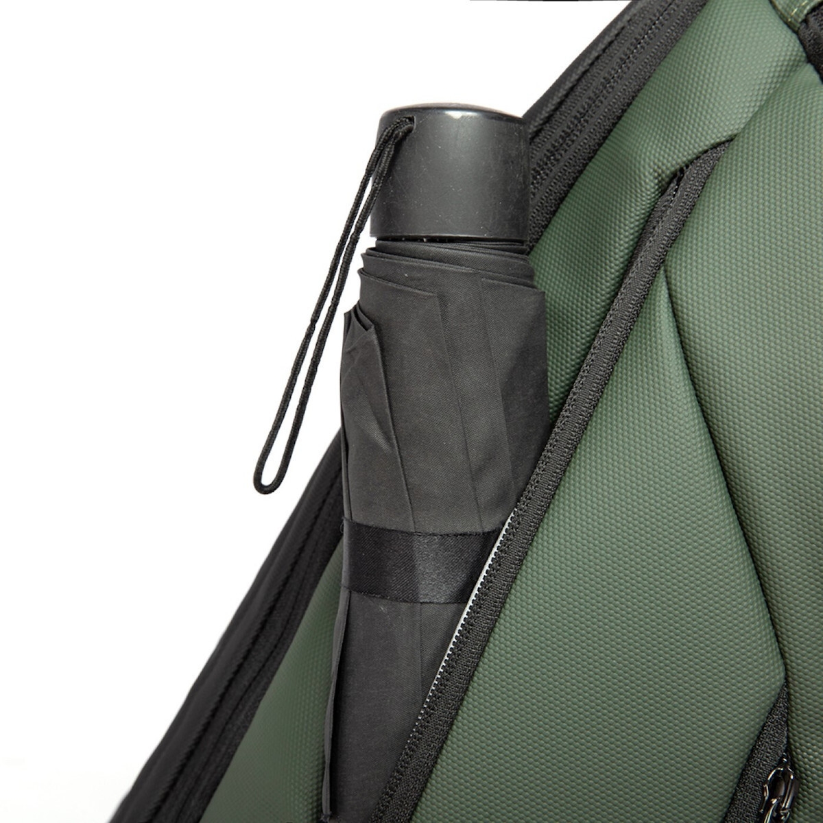 Το μπροστινό διαμέρισμα είναι ιδανικό για τα ακουστικά σας, βιβλία, ρούχα κ.α, ενώ δύο μπροστινές τσέπες είναι ιδανικές για γρήγορες αποθηκευτικές επιλογές, όπως ταυτότητα, κλειδιά και άλλα. Επίσης, διαθέτει δυο τσέπες, αριστερά και δεξιά, κατάλληλες για μία μικρή ομπρέλα ή για ένα μπουκάλι νερό. Επίσης, έχετε τη δυνατότητα να την τοποθετήσετε στη βαλίτσα σας.