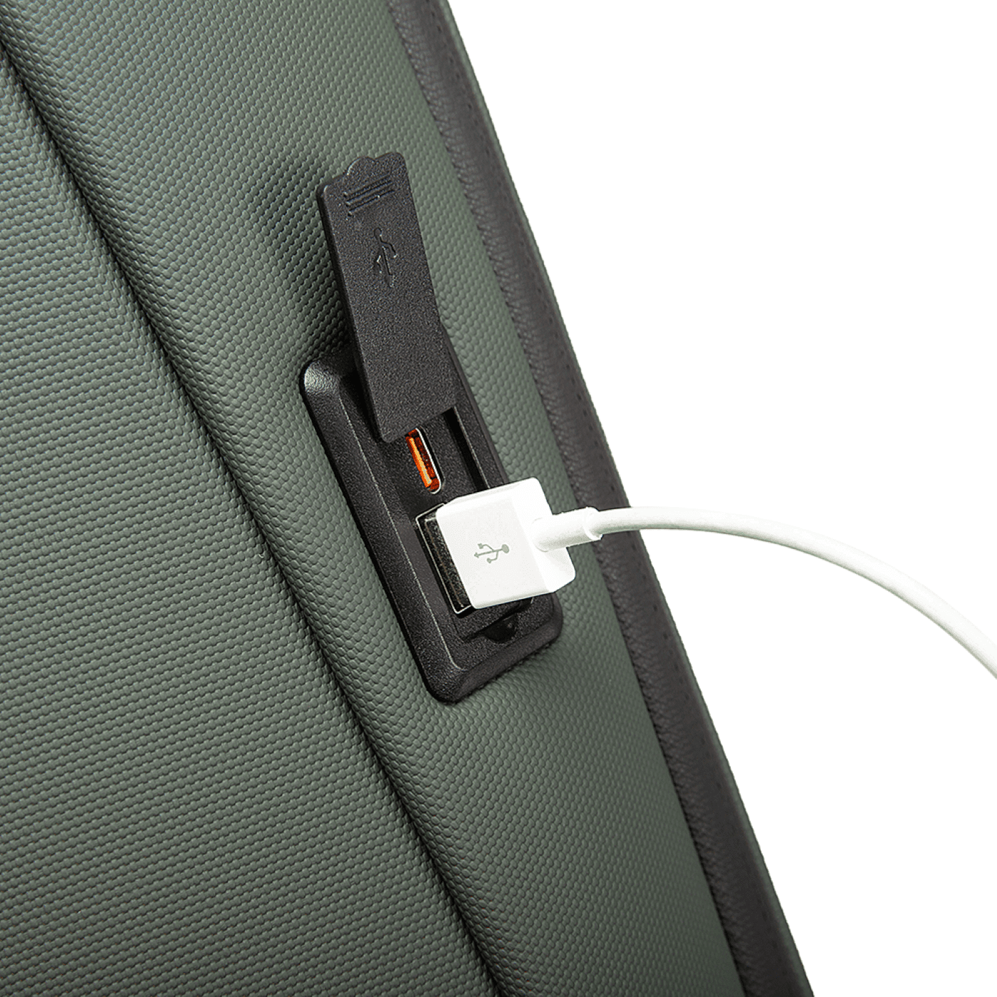 Μία από τις καινοτόμες λειτουργίες του είναι η ενσωματωμένη εξωτερική θύρα USB-A ή Type-C, που σας επιτρέπει να φορτίζετε τις συσκευές σας εν κινήσει. Τέλος, η κλειδαριά ασφαλείας TSA ενισχύει την αίσθηση ασφάλειας κατά τα ταξίδια σας, προσφέροντας προστασία στα αντικείμενά σας χωρίς να θυσιάζεται η πρακτικότητα.