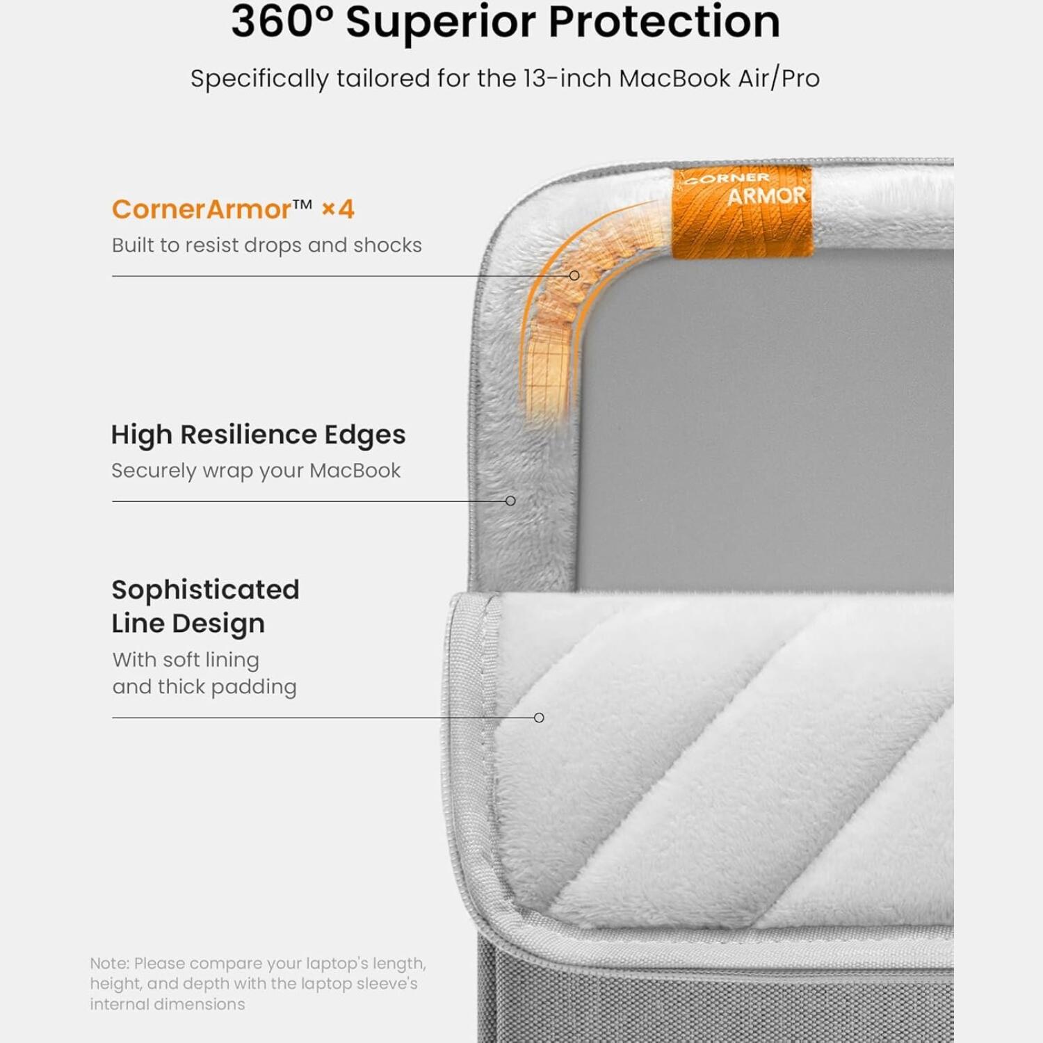 Το κύριο διαμέρισμα διαθέτει υποδοχή για φορητούς υπολογιστές έως 13 ιντσών. Διαθέτει πατενταρισμένη τεχνολογία CornerArmor και στις τέσσερις γωνίες, εξαιρετικά ελαστικές άκρες, εκλεπτυσμένη επένδυση υψηλής πυκνότητας και ανθεκτικό ύφασμα για προστασία 360° στον φορητό υπολογιστή σας!
