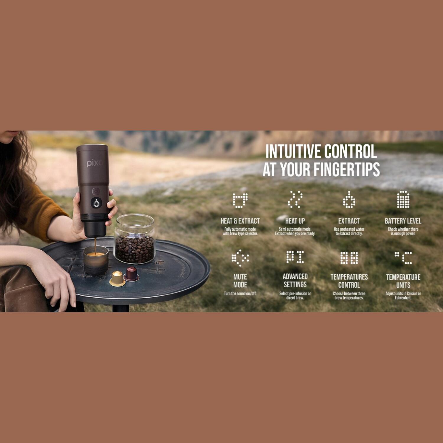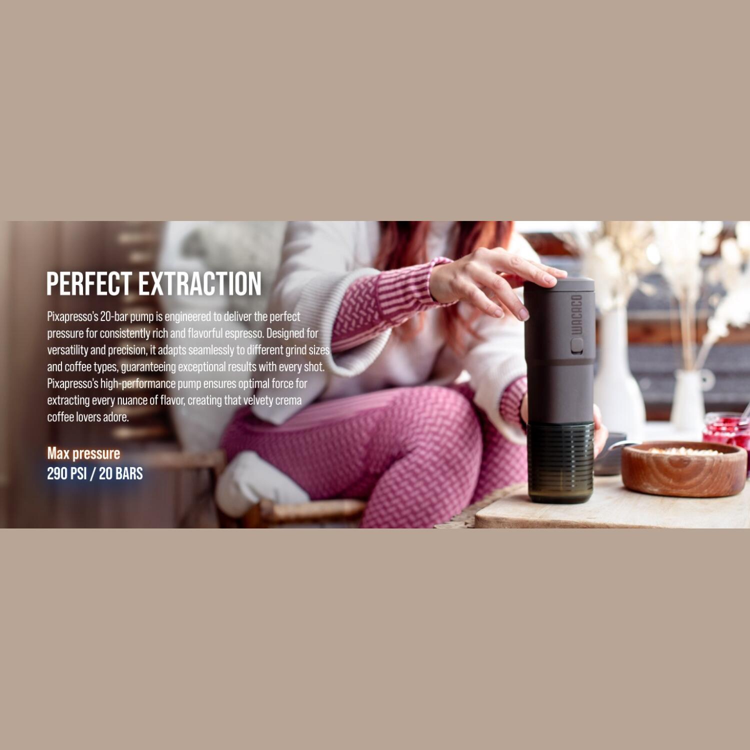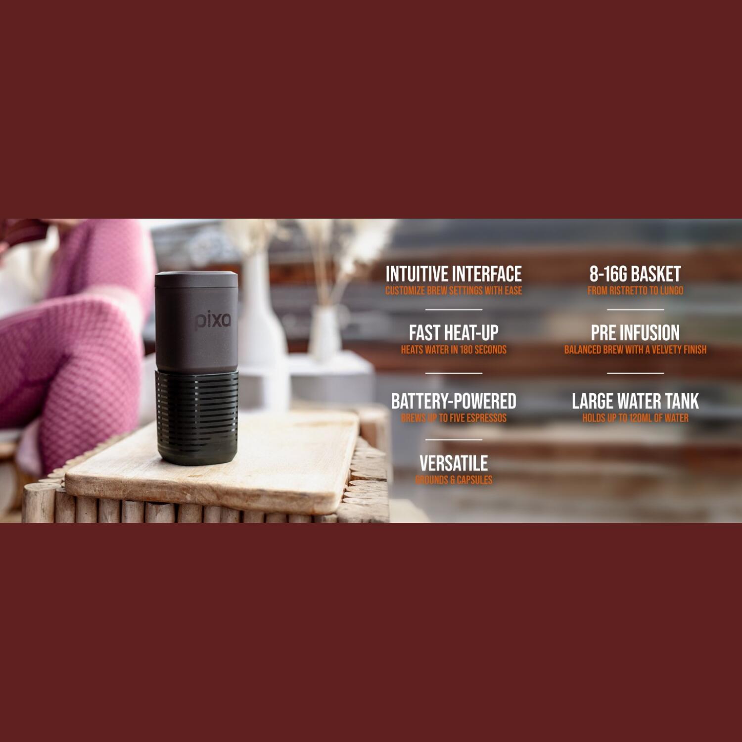 Φτιάξτε απολαυστικό Espresso παντού με την φορητή μηχανή καφέ Pixapresso της Wacaco, ένα μοναδικό Travel Gadget σχεδιασμένο να σας συνοδεύει σε όλα σας τα ταξίδια! Η Pixapresso της Wacaco είναι η πρώτη ηλεκτρική, φορητή μηχανή espresso, ιδανική για τους λάτρεις του καλού καφέ που θέλουν να απολαμβάνουν την αγαπημένη τους γεύση με ευκολία, όπου κι αν βρίσκονται!