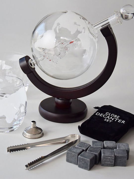 Η συσκευασία περιλαμβάνει: 1 x Καράφα Globe Decanter, 2 x Ασορτί ποτήρια, 1 x Λαβίδα για τον πάγο, 1 x Χωνί από Ανοξείδωτο Ατσάλι, 1 x θήκη με 9 x Πέτρες ουίσκι.