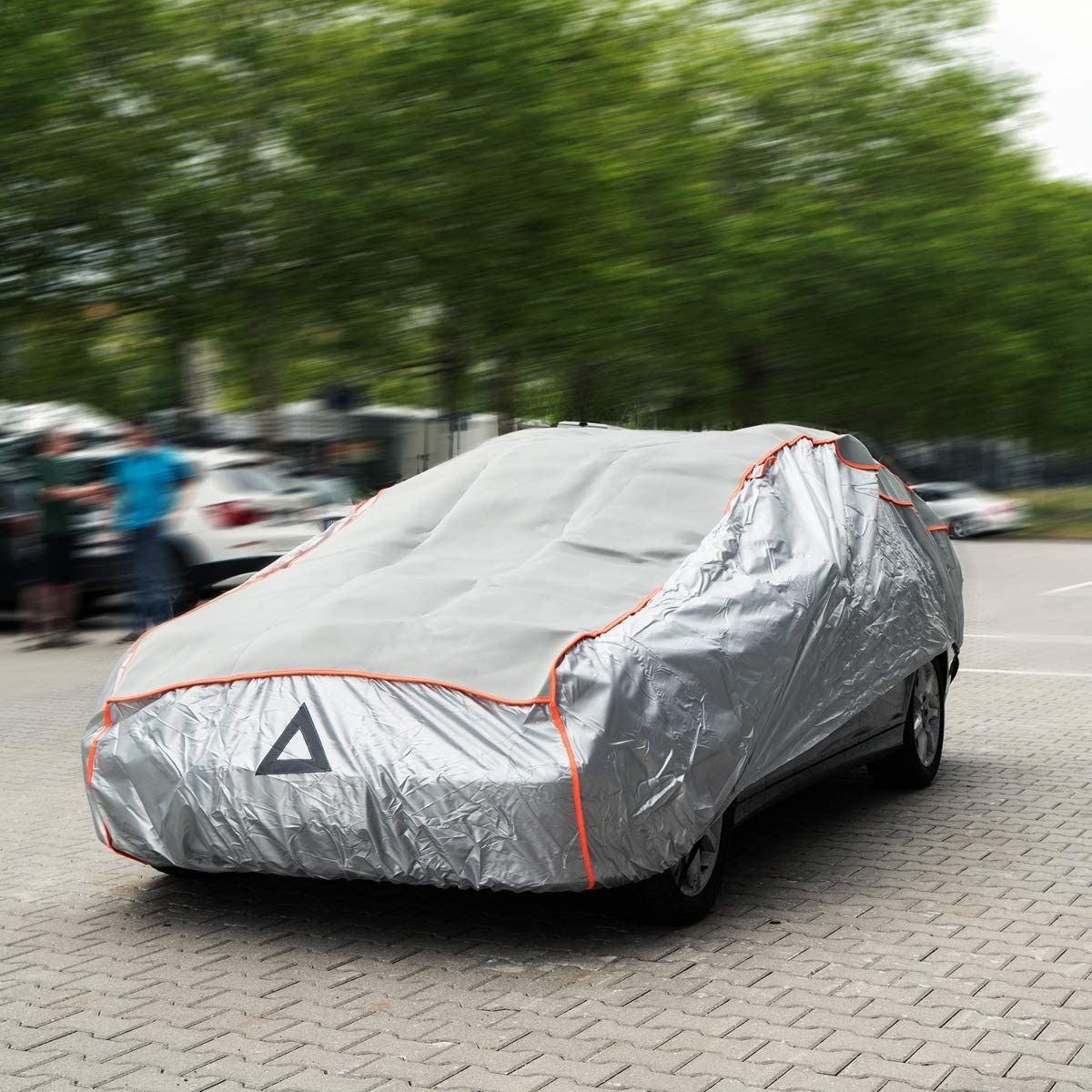 Όταν δεν χρειάζεστε το κάλυμμα αυτοκινήτου, τότε μπορεί να διπλωθεί και να αποθηκευτεί. Επίσης, είναι κατάλληλο για χρήση το καλοκαίρι και το χειμώνα. Χάρη στη χρήση 3 στρώσεων 150D πολυεστέρα, αφρό EVA (αιθυλένιο-οξικός βινυλεστέρας) και ύφασμα, το κάλυμμα αυτοκινήτου είναι ανθεκτικό και ελαστικό.