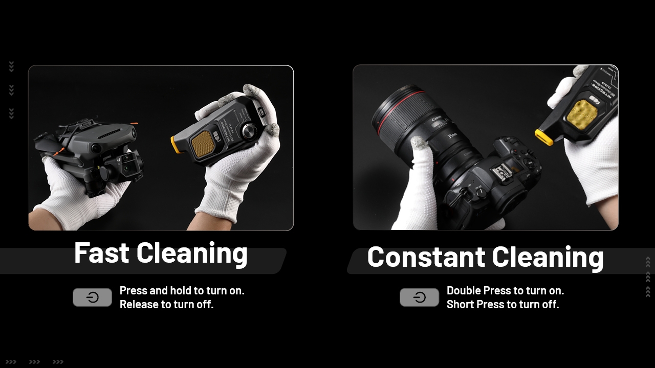Επιπλέον, χάρη στο μοτέρ υψηλής απόδοσης 33.6W, η σκόνη από τους φακούς μπορεί να καθαριστεί πολύ εύκολα. Επίσης, διαθέτει ενσωματωμένη επαναφορτιζόμενη μπαταρία Li-ion 7.2Wh. Με μία πλήρη φόρτιση μπορεί να χρησιμοποιηθεί η συσκευή περίπου για 210 καθαρισμούς. Ο βελτιωμένος αεραγωγός και η φτερωτή, είναι σχεδιασμένα με την εφαρμογή της δυναμικής των ρευστών, ο αεραγωγός μπορεί να μειώσει αποτελεσματικά την αντίσταση του αέρα βελτιώνοντας παράλληλα την ισχύ του. Η ενσωματωμένη φτερωτή 42mm με 20 υψηλής αντοχής πτερύγια παρέχει συμπαγή και ελαφριά κατασκευή ώστε να μειωθεί ο θόρυβος και να αυξηθεί η αποτελεσματικότητα στο φύσημα του αέρα.