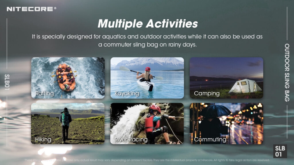 Μπορεί να σας συνοδεύσει σε πολλές εξωτερικές δραστηριότητες, όπως rafting, kayaking, camping, πεζοπορία, ορειβασία, κατάβαση ποταμών και την καθημερινή σας μετακίνηση, ειδικά τις βροχερές ημέρες. Είναι κατασκευασμένο από αδιάβροχο συνθετικό ύφασμα PVC 500D και φιλικό με τις οθόνες αφής.