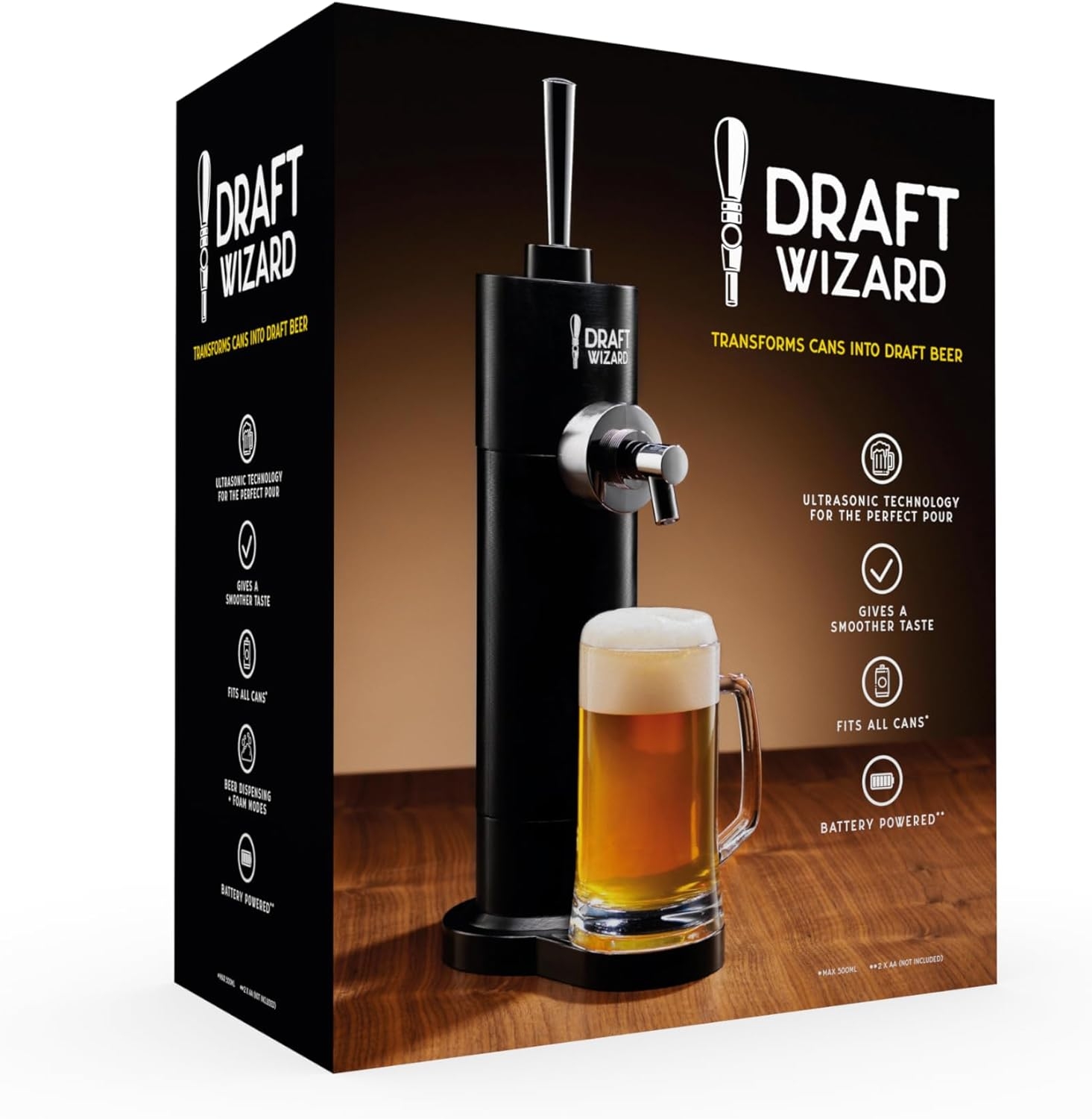 Με κομψό και πρωτότυπο σχεδιασμό, το Draft Wizard δεν είναι απλά μια συσκευή, αλλά ένα gadget που θα εντυπωσιάσει τους φίλους σας! Τραβήξτε το μοχλό προς τα εμπρός για να γεμίσετε το ποτήρι σας με μπύρα και στη συνέχεια πιέστε τον προς τα πίσω για να ενεργοποιήσετε την τεχνολογία υπερήχων μικροαφρισμού, που δημιουργεί έναν απαλό και αρωματικό αφρό.