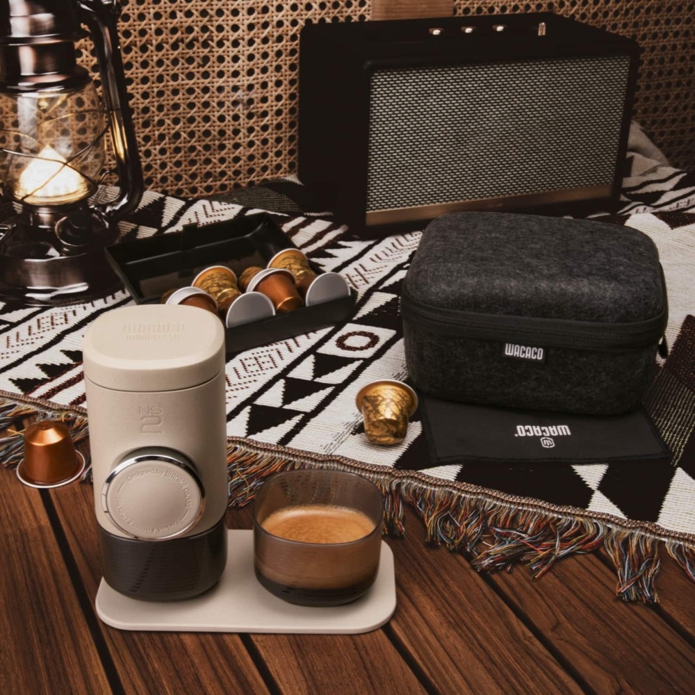 Τέλος, μέσα στη συσκευασία περιλαμβάνεται ένα σουβέρ σιλικόνης και μια πετσέτα μικροϊνών, καθιστώντας την ιδανικό σετ της Minipresso NS2. Μπορείτε να τη μεταφέρετε είτε στο σακίδιό σας, είτε στις αποσκευές σας, είτε στον ώμο σας, χάρη στον περιλαμβανόμενο ιμάντα μεταφοράς, είστε έτοιμοι για την επόμενη μεγάλη περιπέτειά σας!