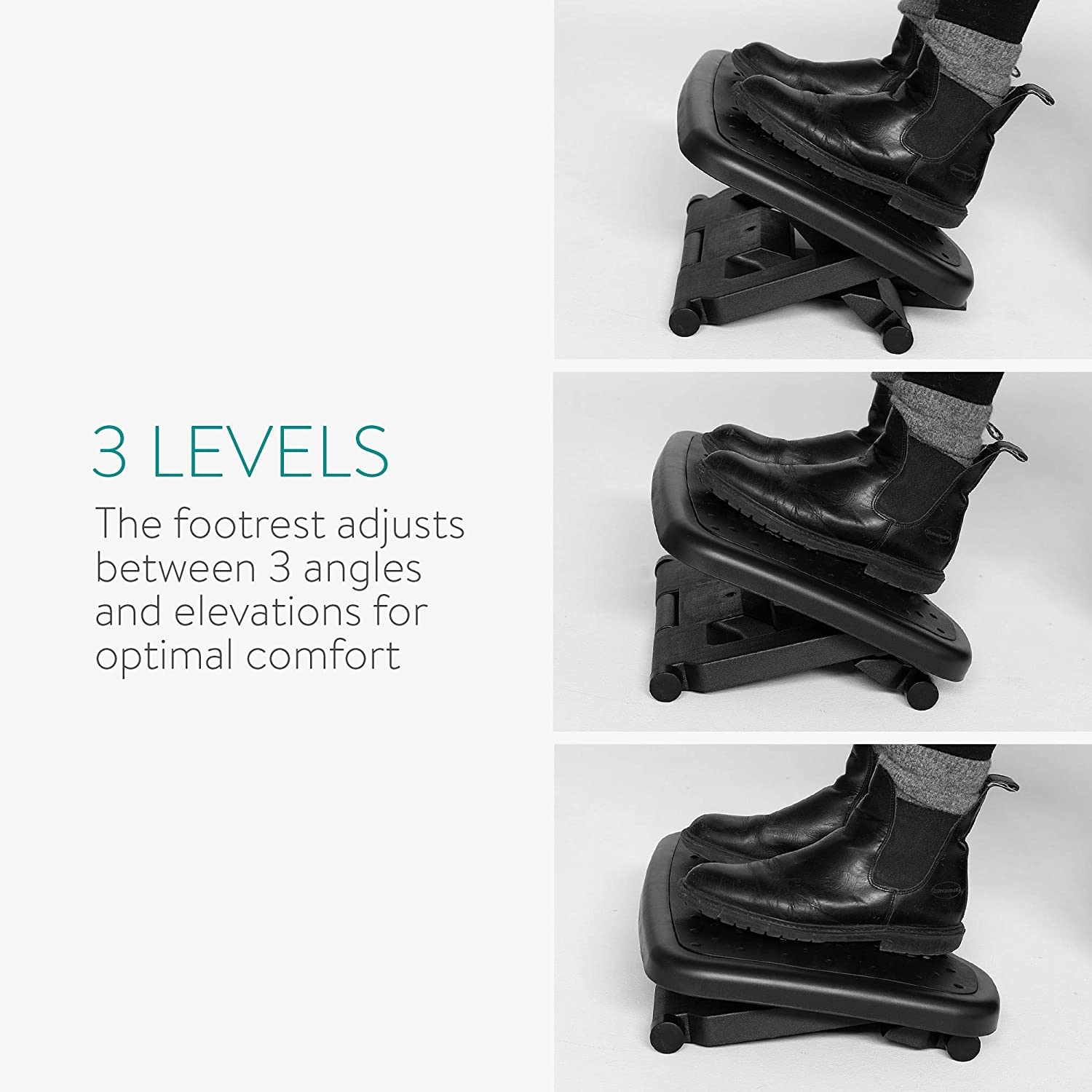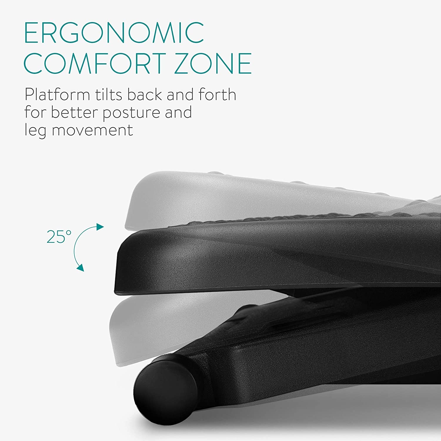 Το ανθεκτικό υποπόδιο προσαρμόζεται σε γωνίες μεταξύ 0 και 25°, εσείς απλά ασκήστε πίεση με τα πόδια σας για να αλλάξετε εύκολα τη γωνία. Μπορείτε να το μεταφέρετε ενώ ταξιδεύετε, για να εξασφαλίσετε την καλή στάση του σώματος όπου κι αν πάτε!