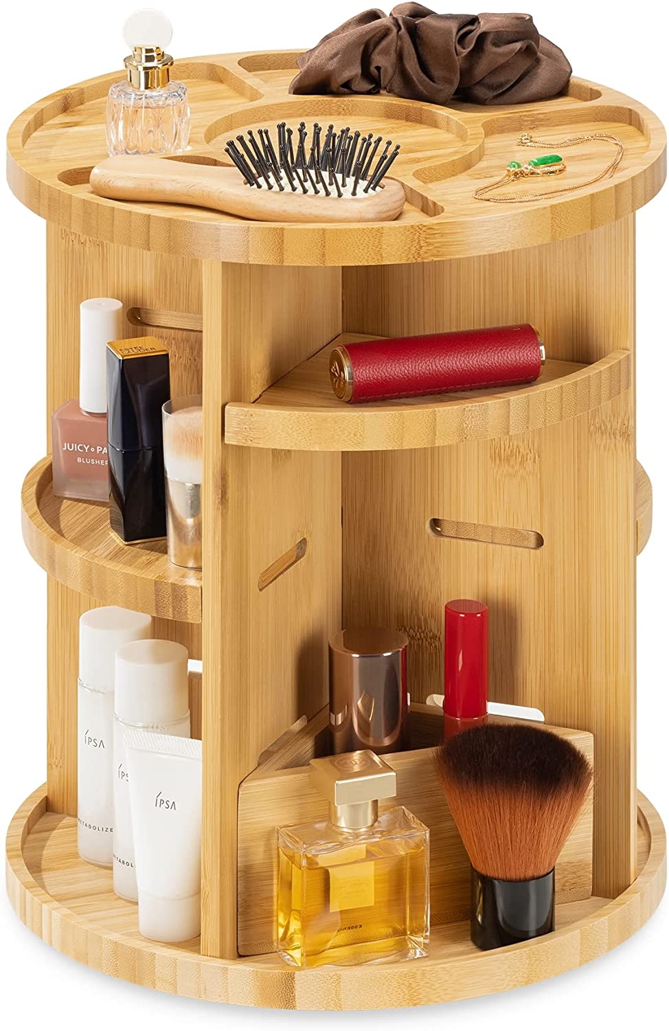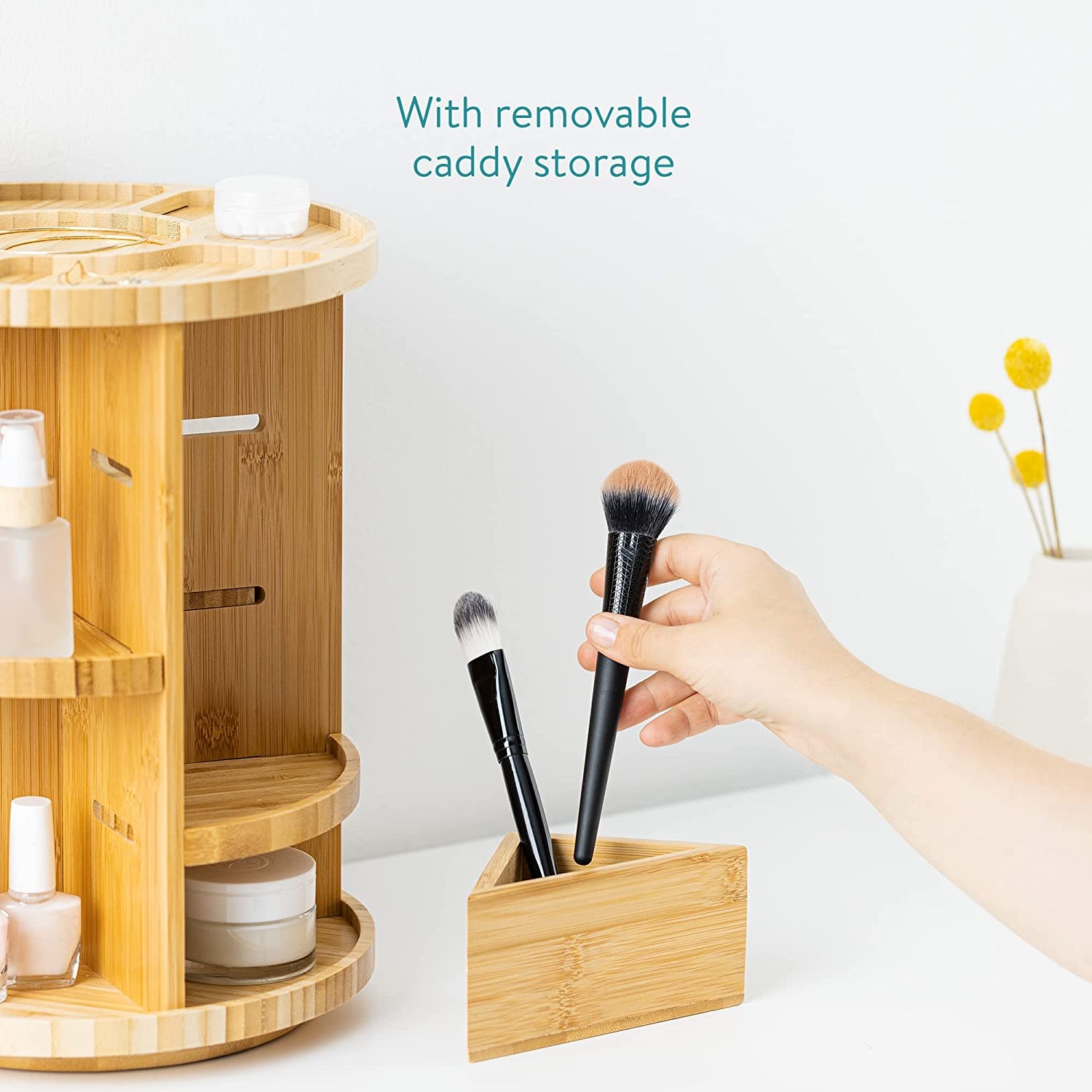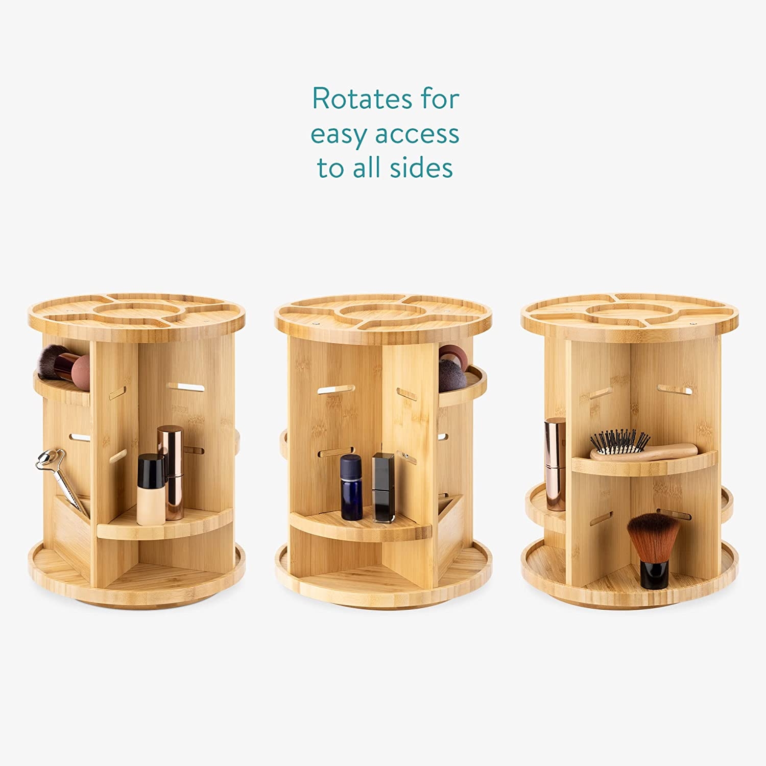 Επιπλέον, αυτός ο μοναδικός οργανωτής καλλυντικών σας προσφέρει ευκολία κινήσεων, καθώς περιστρέφεται 360° ώστε να έχετε πλήρη πρόσβαση. Εκτός από τα καλλυντικά σας μπορείτε να οργανώσετε το γραφείο σας και τη γραφική ύλη, όπως χαρτικά και πολλά άλλα ή μπορείτε να τη χρησιμοποιήσετε και ως βάση για την κουζίνα σας.