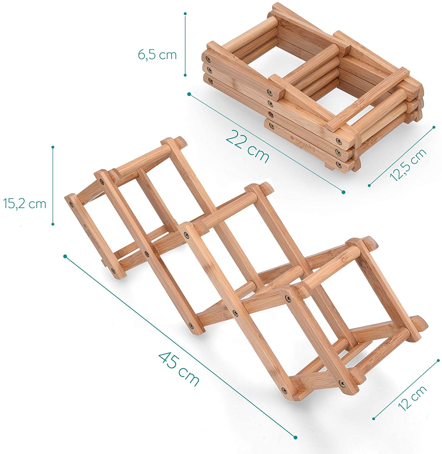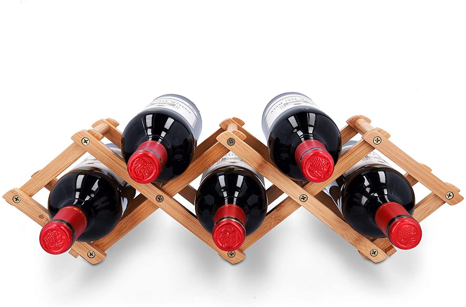 Κατασκευασμένο από υψηλής ποιότητας μπαμπού, το ράφι ποτών είναι στιβαρό και ανθεκτικό στην καθημερινή χρήση. Χρησιμοποιήστε αυτήν τη βάση για να εμφανίσετε και να αποθηκεύσετε έως και 5 μπουκάλια του καλύτερου κρασιού ή οινοπνευματωδών ποτών σας. Ενώ η οριζόντια αποθήκευση κρασιού βοηθά στην αποφυγή του στεγνώματος του φελλού.