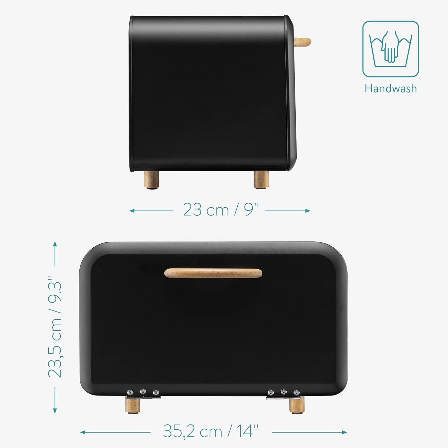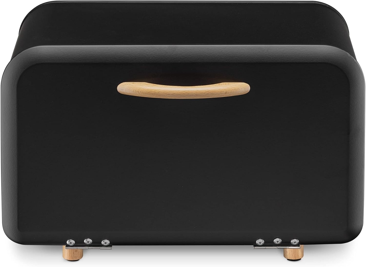 Η πρακτικότητα συναντά τη Vintage σχεδίαση με αυτή την υπέροχη μεταλλική ψωμιέρα από τη Navaris! Διαθέτει μία υψηλής ποιότητας λαβή στο μπροστινό μέρος από ξύλο οξιάς και κομψά πόδια που προσθέτουν τις τελευταίες πινελιές σε αυτό το κουτί αποθήκευσης ψωμιού.