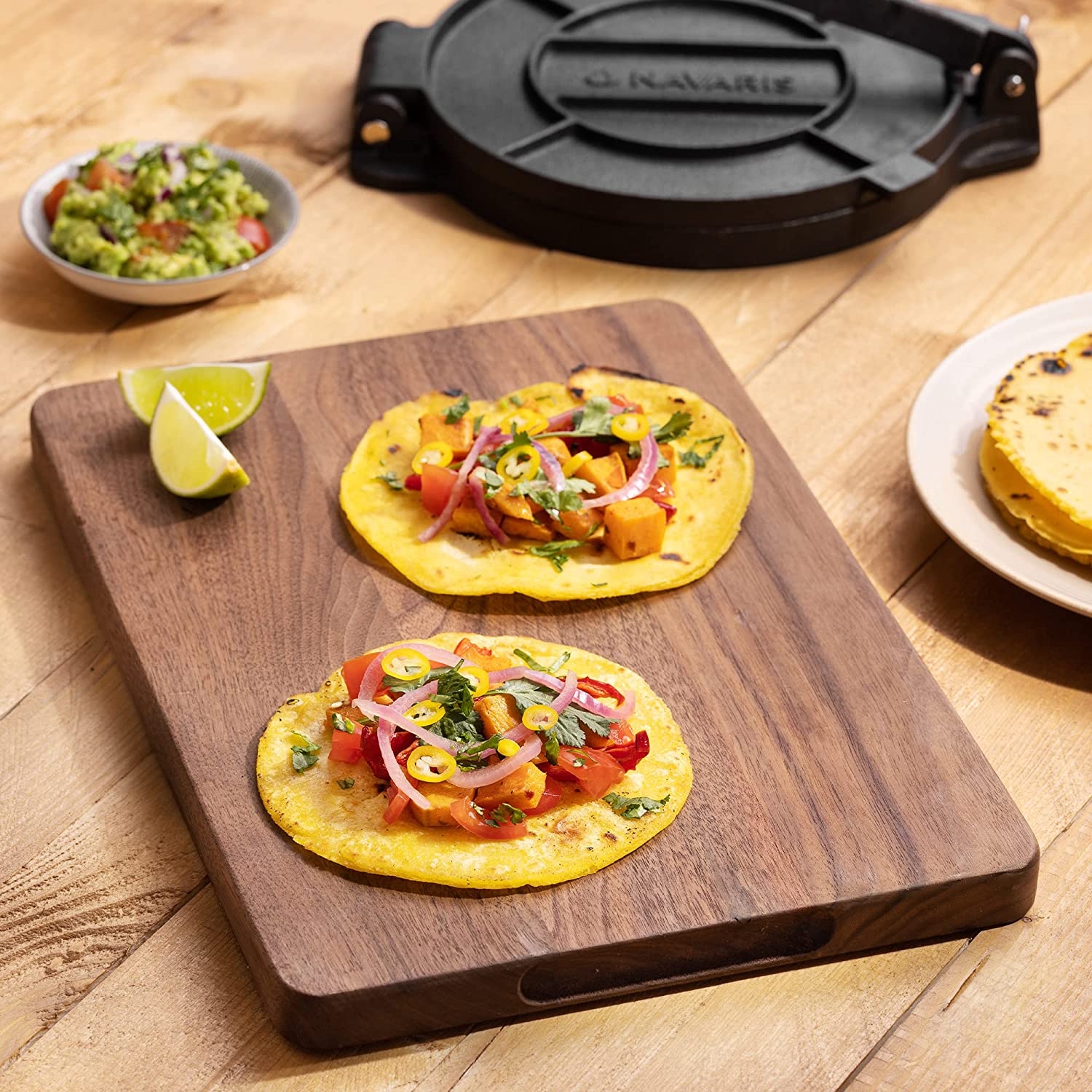 Με την πρέσα για τορτίγιες της Navaris μπορείτε να φτιάξετε τις δικές σας λαχταριστές σπιτικές τορτίγιες εύκολα και γρήγορα! Ετοιμάστε την κατάλληλη ζύμη, σχηματίστε μια μικρή μπάλα και πιέστε την ανάμεσα σε δύο φύλλα λαδόκολλας στη συσκευή για να σχηματιστεί η τορτίγια.