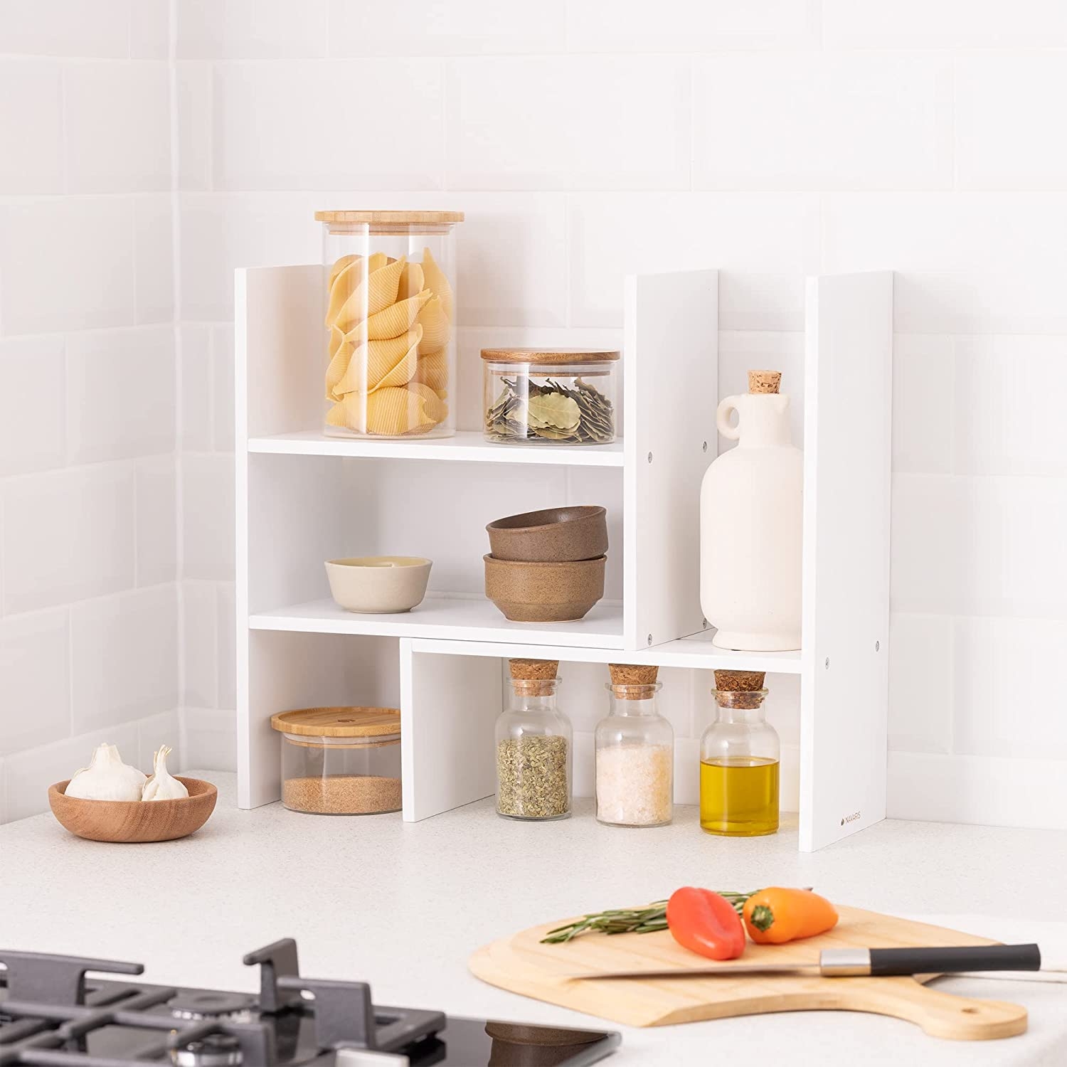 Οργανώστε το γραφείο, το σαλόνι ή την κουζίνα σας και αναβαθμίστε τον χώρο σας με τα μοναδικά ράφια της Navaris! Είναι ρυθμιζόμενα και αποτελούνται από 2 τμήματα τα οποία μπορείτε να τα τοποθετήσετε σε διάφορες διατάξεις, ανάλογα με τις ανάγκες σας.