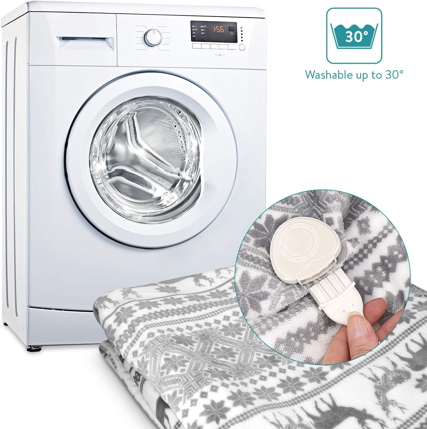 Επίσης, η θερμαινόμενη κουβέρτα μπορεί να πλυθεί στο χέρι ή μπορεί να πλυθεί στο πλυντήριο στα ευαίσθητα σε χαμηλή θερμοκρασία. Επιπλέον, για να μπορέσετε να αποθηκεύσετε την κουβέρτα την περίοδο του καλοκαιριού, θα λάβετε μια τσάντα αποθήκευσης. Χάρη στο όμορφο διπλό σχεδιασμό της, η κουβέρτα της Navaris θα γίνει η αγαπημένη σας κουβέρτα!