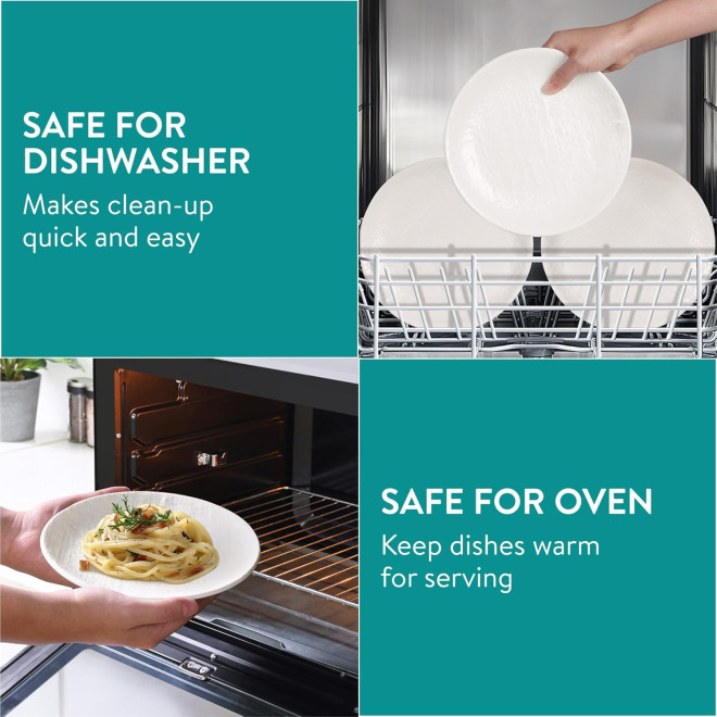 Το ανάγλυφο σχέδιο εμπνευσμένο από το λινό υφαντό προσδίδει μοναδικότητα και διαχρονική ομορφιά, καθιστώντας το ιδανικό για κάθε περίσταση. Το σετ αυτό είναι σχεδιασμένο για μέγιστη ευκολία και αποτελεσματικότητα, καθώς είναι κατάλληλο για τον φούρνο μικροκυμάτων αλλά και το πλυντήριο πιάτων, ενώ ο συμπαγής και στοιβαζόμενος σχεδιασμός του εξασφαλίζει την αποτελεσματική χρήση του χώρου στο ντουλάπι σας, κάνοντάς το ιδανικό για μικρές κουζίνες.