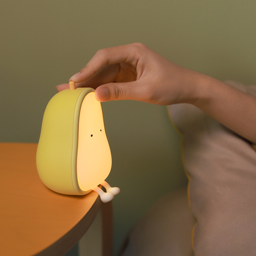 Το Allocacoc Pear Night Lamp είναι εμπνευσμένο από τη φύση, το φωτιστικό / παιχνίδι σε σχήμα ενός γλυκού νυσταγμένου αχλαδιού με ανθρώπινα χαρακτηριστικά, τοποθετείται δίπλα στο παιδικό κρεβάτι και βοηθάει το παιδί να χαλαρώσει πριν κοιμηθεί και να ξεπεράσει το φόβο του στο σκοτάδι.