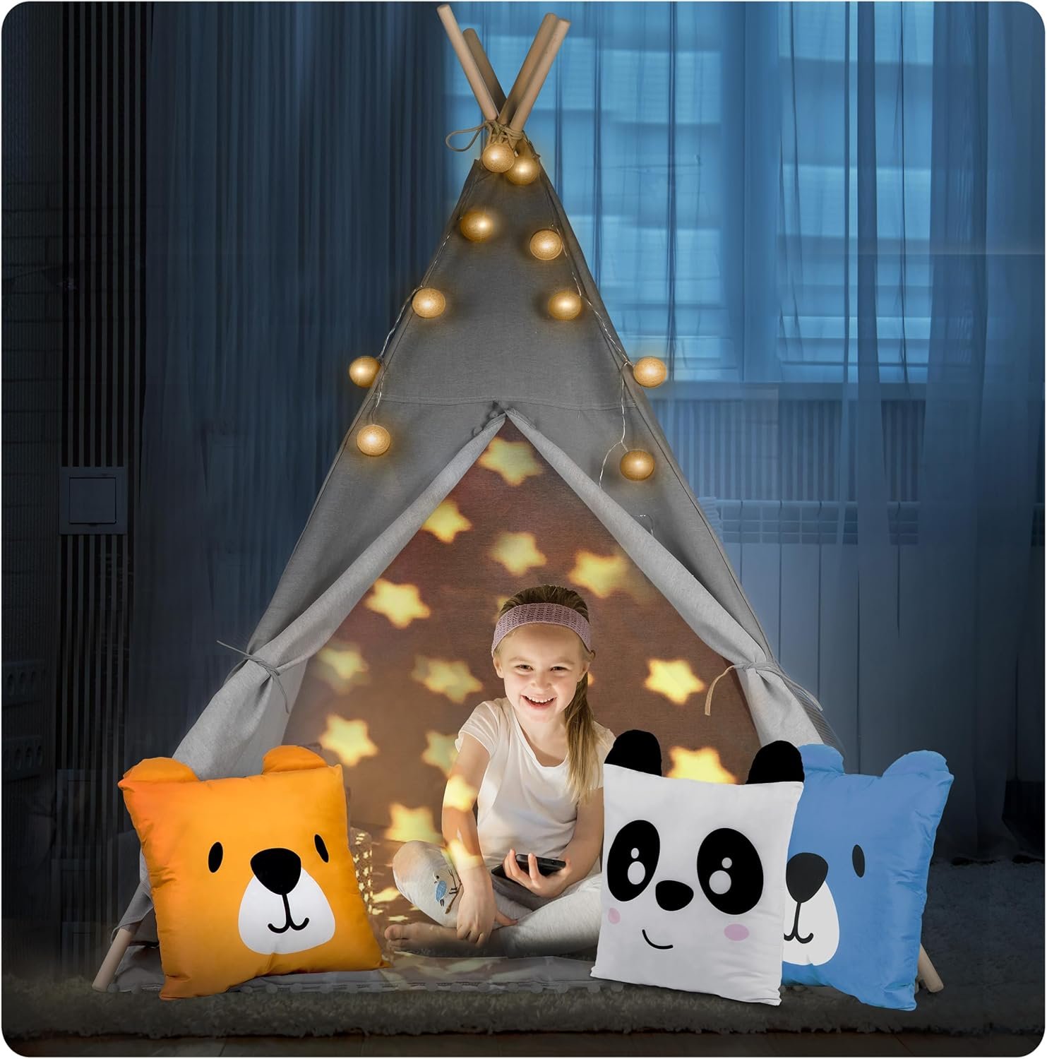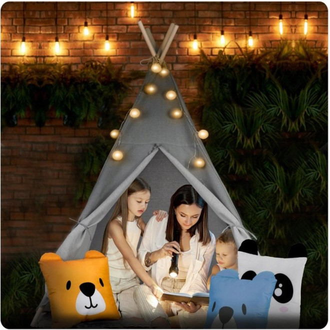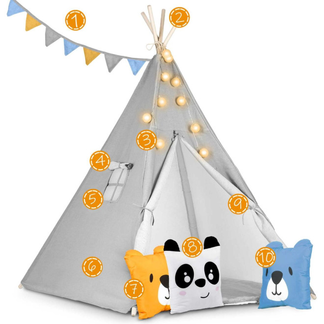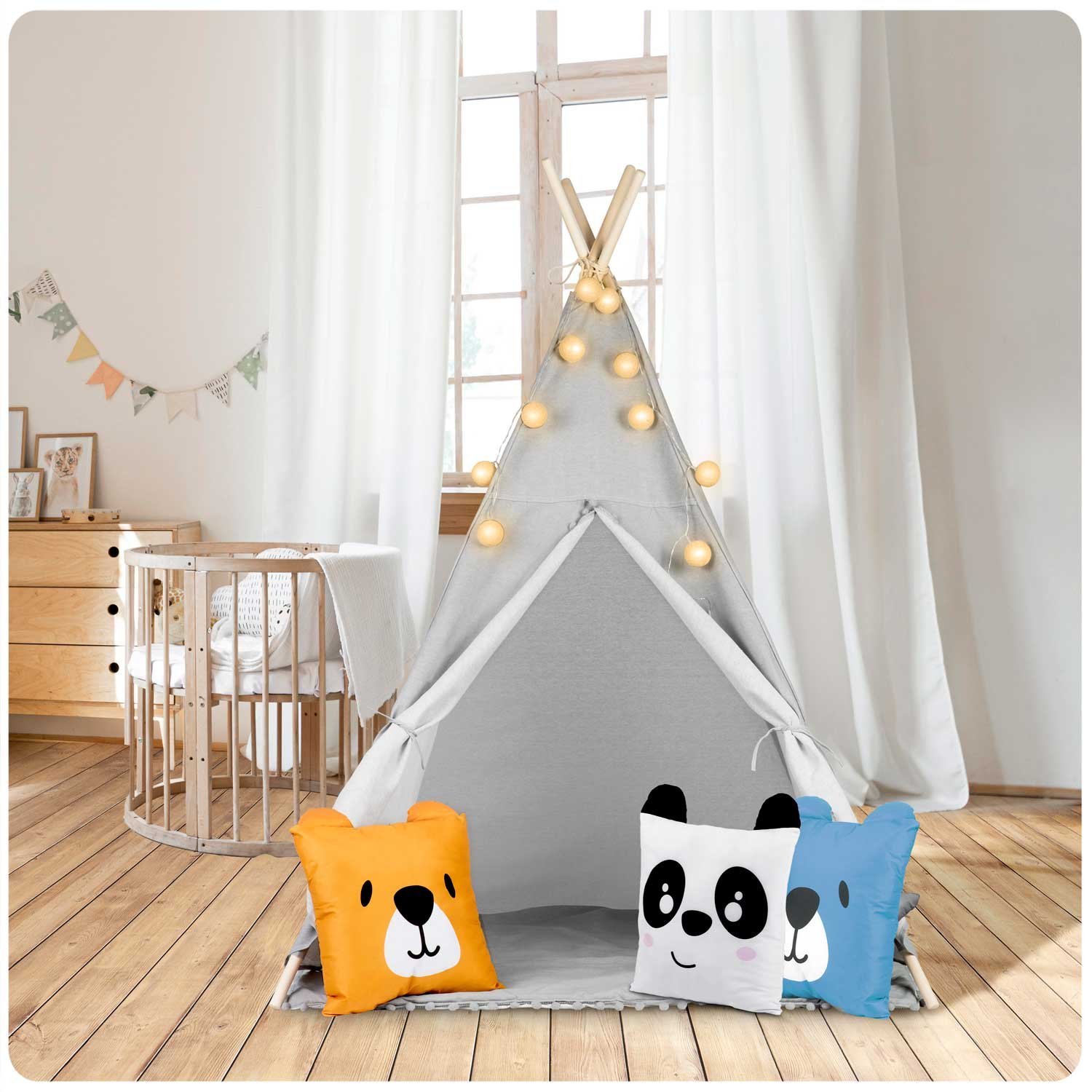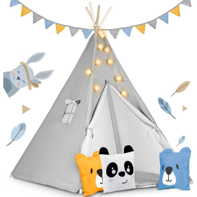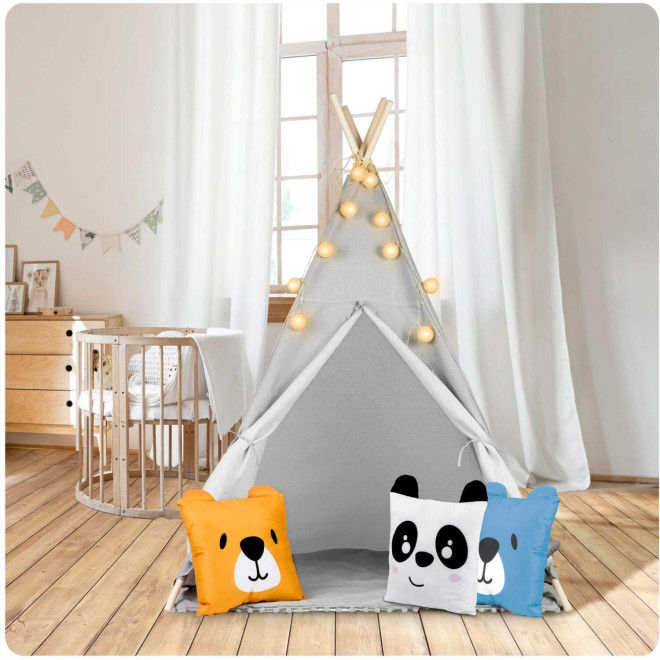 Η παιδική σκηνή Teepee είναι η τέλεια προσθήκη σε κάθε παιδικό δωμάτιο, χαρίζοντας στα παιδιά έναν χώρο γεμάτο ζεστασιά και μοναδικές ώρες παιχνιδιού. Με φυσικά υλικά υψηλής ποιότητας, μαξιλάρια, γιρλάντα και φωτάκια, αυτό το tipi θα γίνει το αγαπημένο τους σημείο!