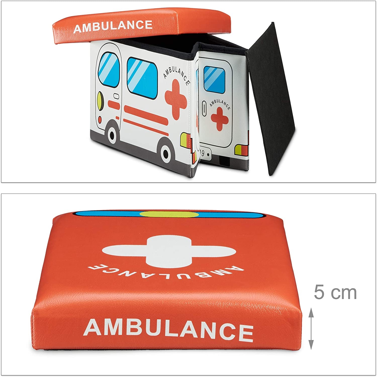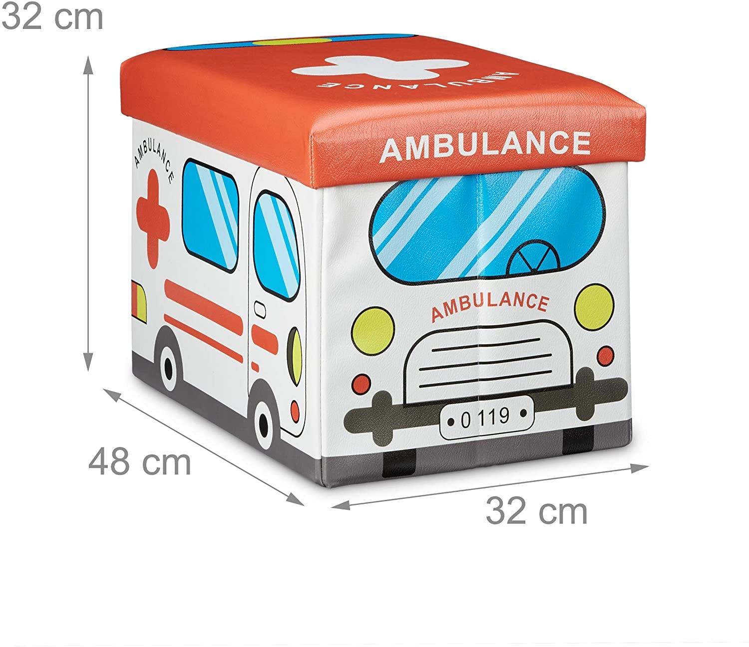 Οργανώστε γρήγορα το δωμάτιο των παιδιών σας, με αυτό το πρακτικό και χαριτωμένο 2 σε 1 κουτί αποθήκευσης παιχνιδιών και σκαμπό της Relaxdays! Έρχεται σε ένα διασκεδαστικό σχέδιο Ambulance και αποτελεί ένα όμορφο διακοσμητικό για το παιδικό δωμάτιο που θα τραβάει όλα τα βλέμματα!