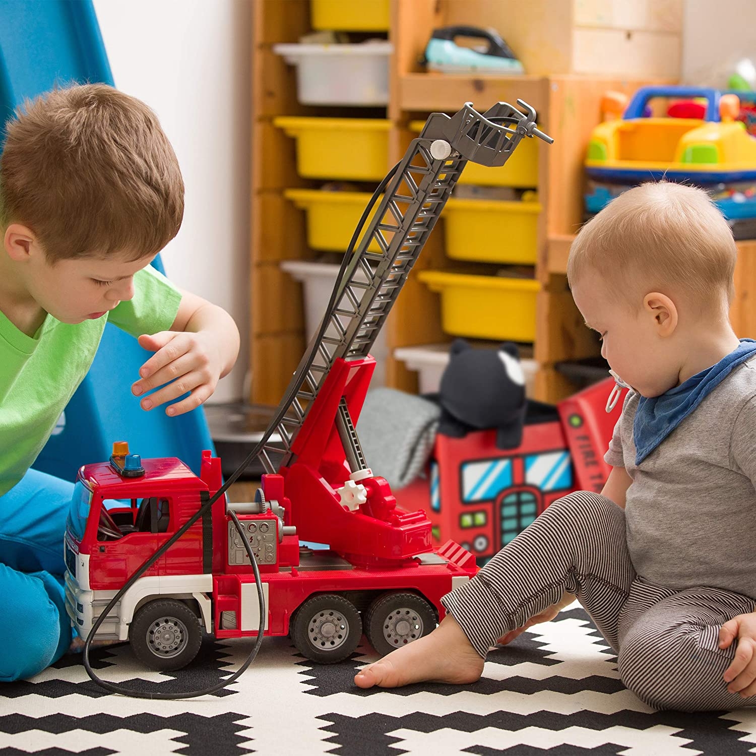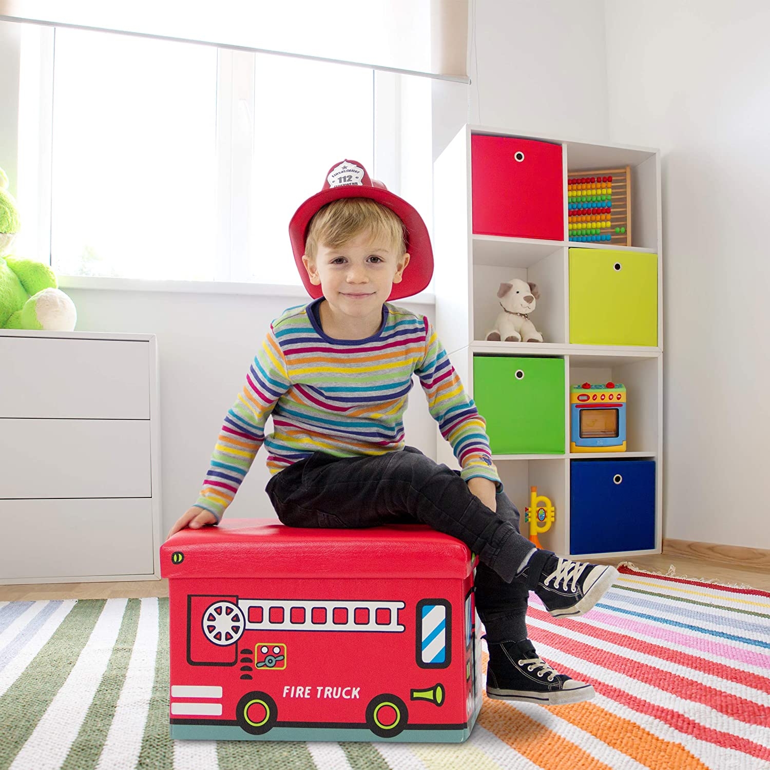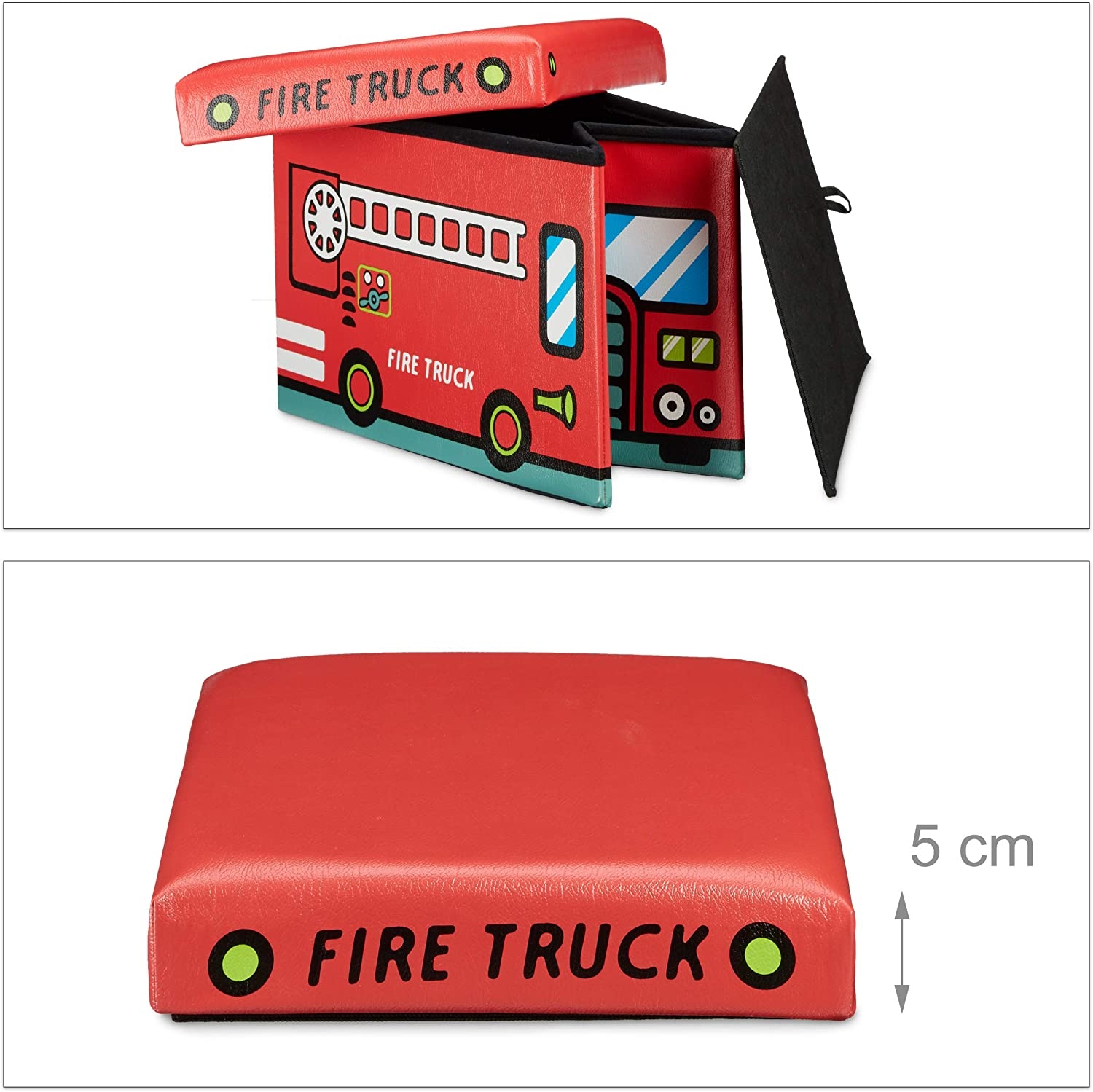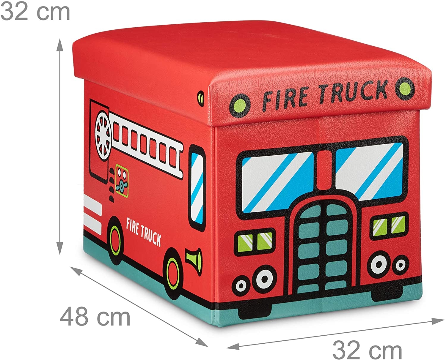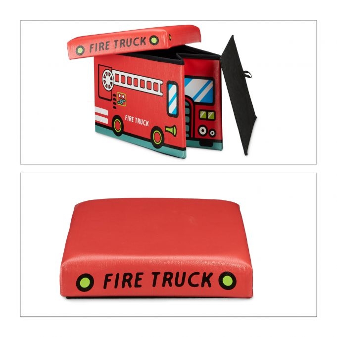 Οργανώστε γρήγορα το δωμάτιο των παιδιών σας, με αυτό το πρακτικό και χαριτωμένο 2 σε 1 κουτί αποθήκευσης παιχνιδιών και σκαμπό της Relaxdays! Έρχεται σε ένα διασκεδαστικό σχέδιο Fire Truck και αποτελεί ένα όμορφο διακοσμητικό για το παιδικό δωμάτιο που θα τραβάει όλα τα βλέμματα!