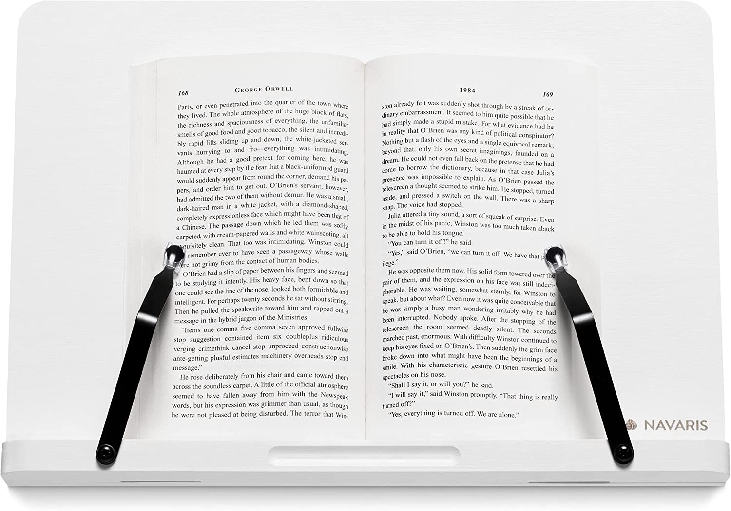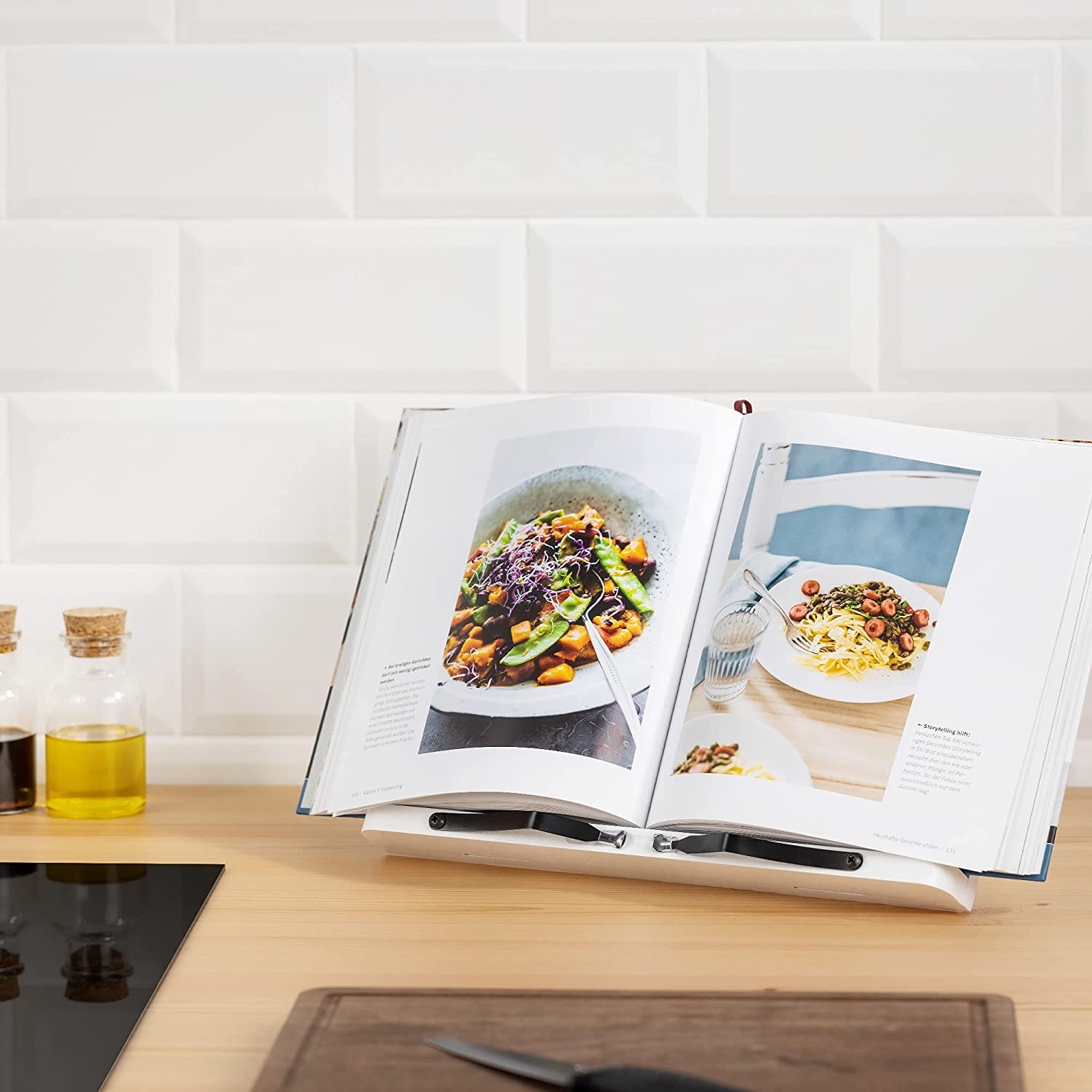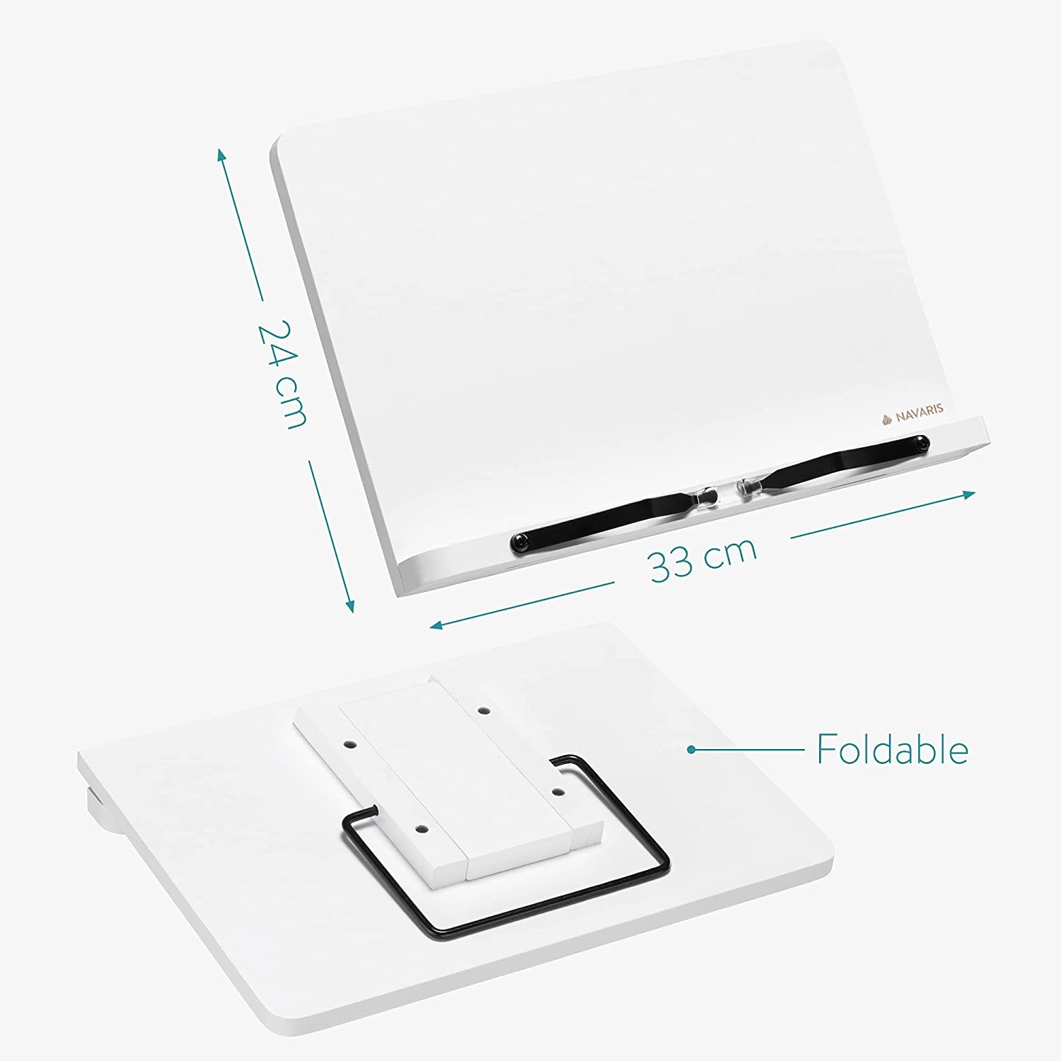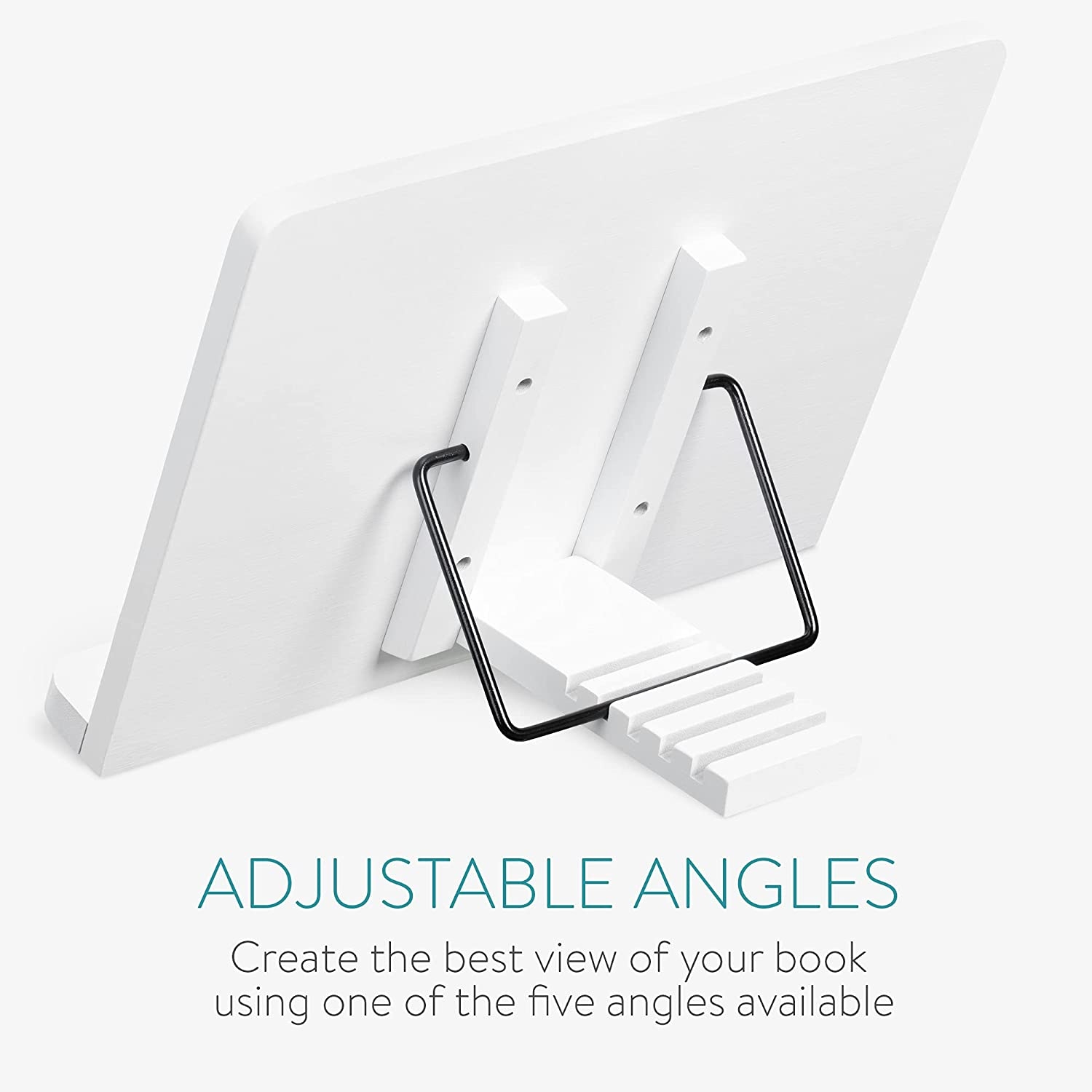 Μπορείτε να προσαρμόσετε τη γωνία της βάσης όπως επιθυμείτε, για να διευκολύνετε όσο το δυνατόν περισσότερο την ανάγνωση συνταγών και οδηγιών όταν τις χρειάζεστε. Διαθέτει διαστάσεις 33 x 24 cm και ρυθμιζόμενους βραχίονες. Έτσι, μπορείτε να το τοποθετήσετε σε μικρότερα τραπέζια ή ψηλότερους πάγκους και να έχετε πάντα το βιβλίο σας μπροστά.