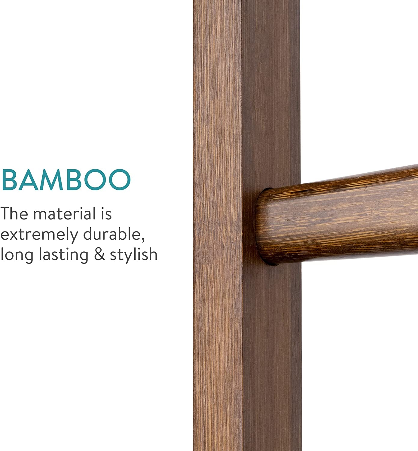 Το μπαμπού είναι ένα εξαιρετικό υλικό που είναι ιδιαίτερα κομψό αλλά έχει εξίσου μεγάλη αντοχή στην χρήση. Είναι ένα μακράς διαρκείας, κομψό και βιώσιμο υλικό, που το καθιστά ιδανικό για χρήση το σπίτι. Επιπλέον, η σκάλα διαθέτει "πόδια" σιλικόνης για βελτιωμένη πρόσφυση στο πάτωμα.