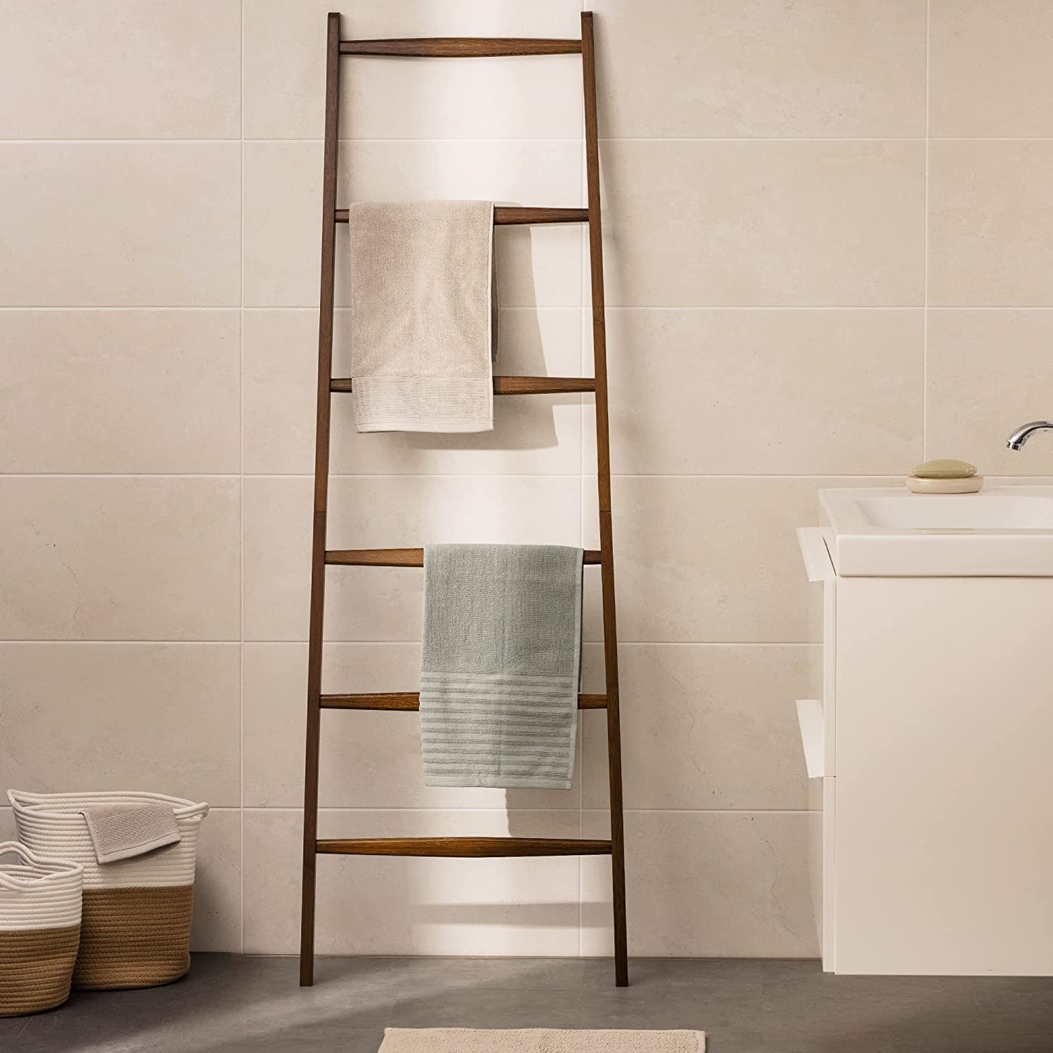 Είτε πρόκειται για μπάνιο, γκαρνταρόμπα ή κρεβατοκάμαρα, η σκάλα ταιριάζει όμορφα σε κάθε δωμάτιο! Τα πόδια με διάμετρο 3 cm διασφαλίζουν ότι η βάση της πετσέτας είναι σταθερή και ότι μπορείτε να κρεμάσετε εύκολα την πετσέτα σας.