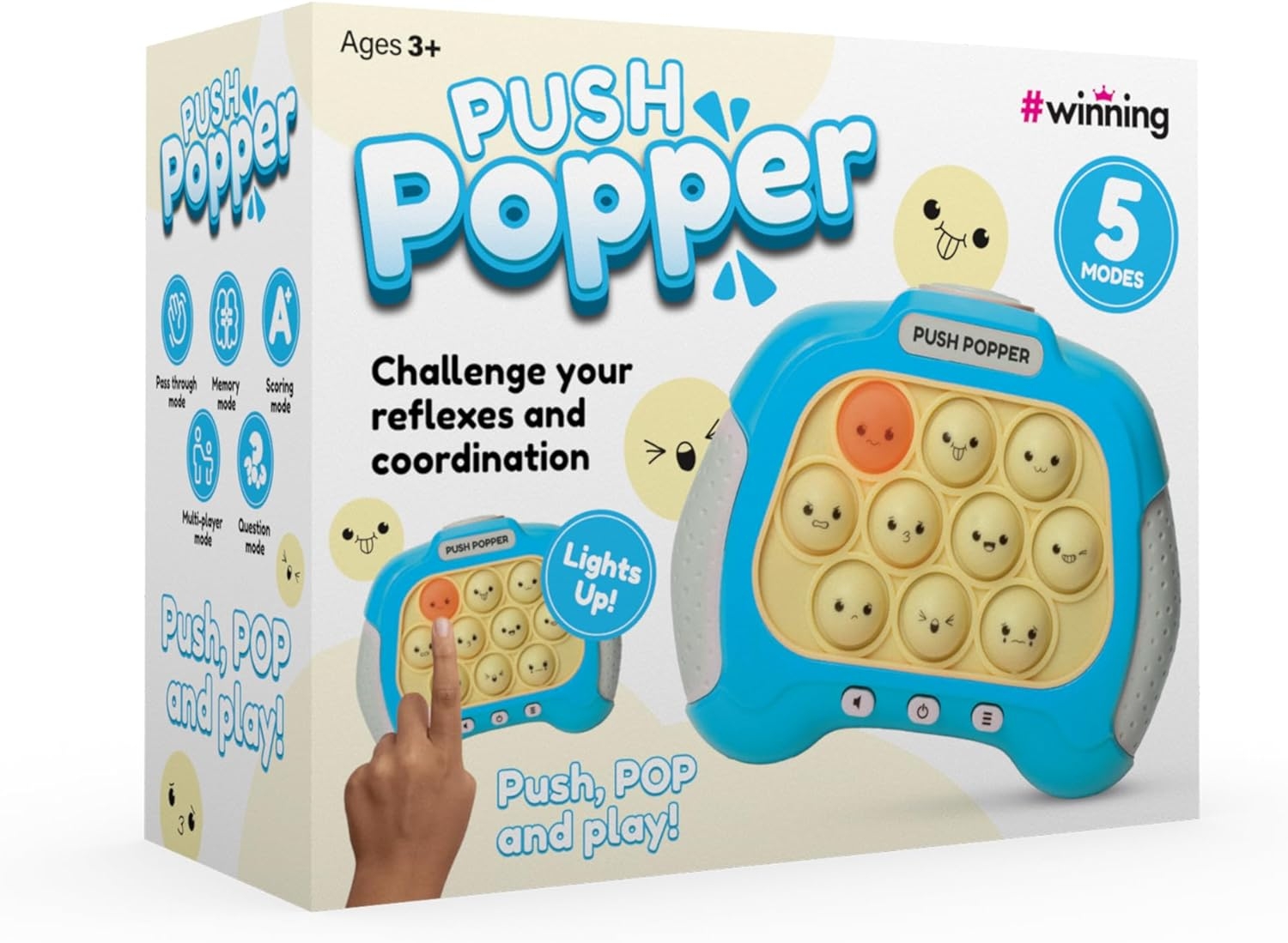 Ιδανικό για antistress, διασκέδαση στο σπίτι ή ακόμα και για εκπαιδευτική χρήση. Είναι ένα πολυλειτουργικό παιχνίδι που ενισχύει τις μαθηματικές δεξιότητες και τον συντονισμό χεριού-ματιού. Ανακαλύψτε την απόλυτη ηλεκτρονική διασκέδαση με το Push Popper και δείτε πόσο μακριά μπορείτε να φτάσετε!