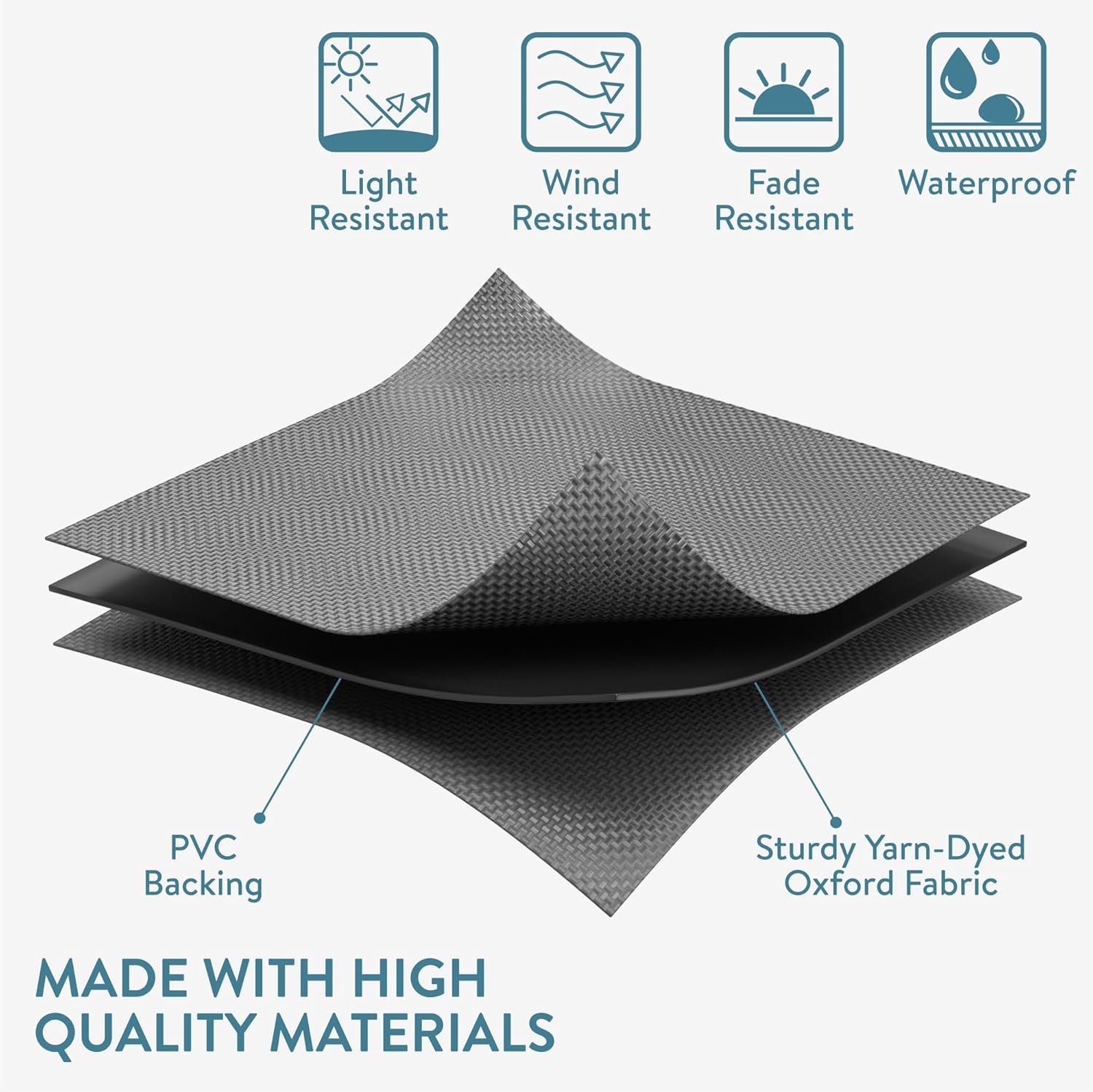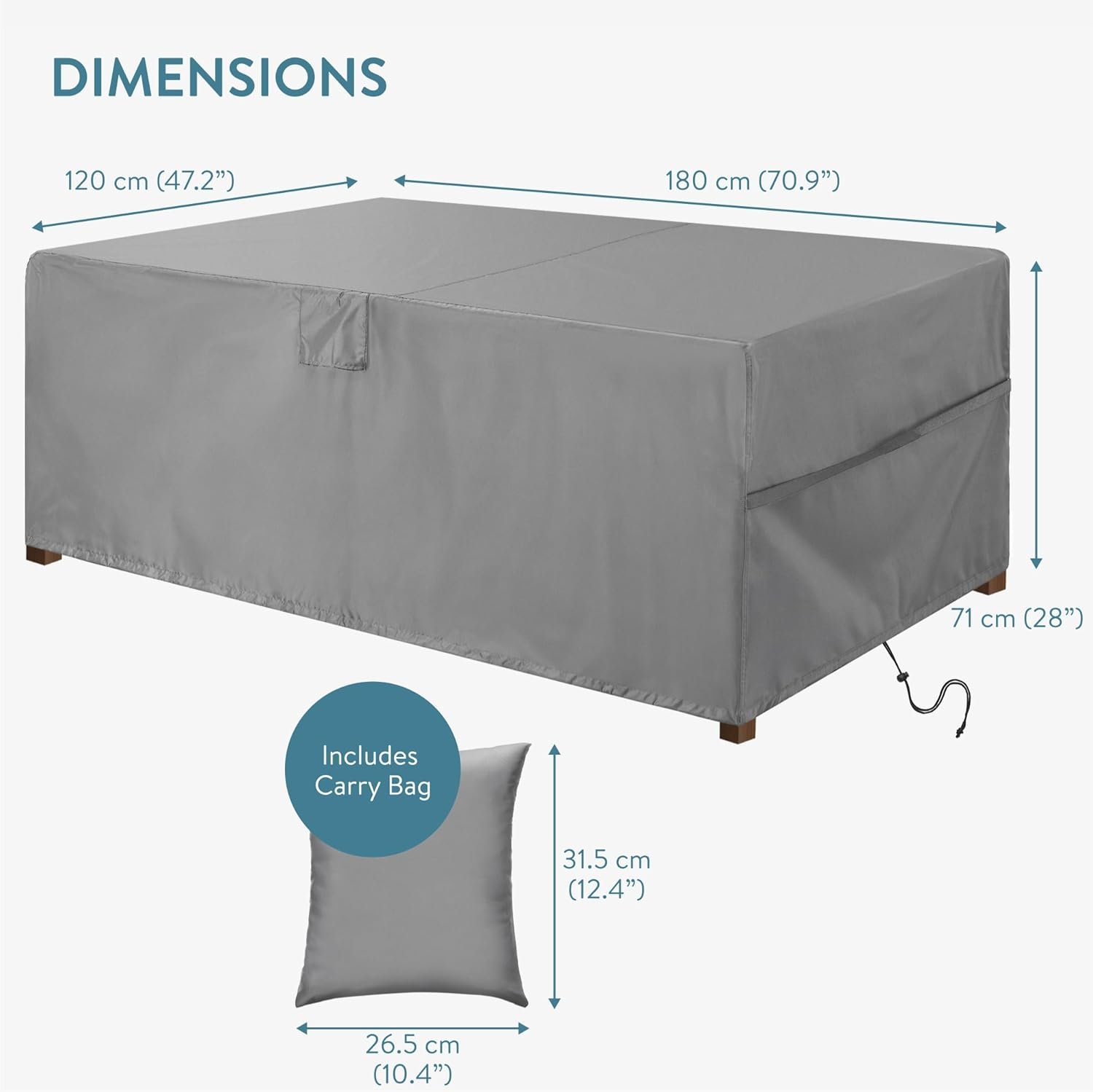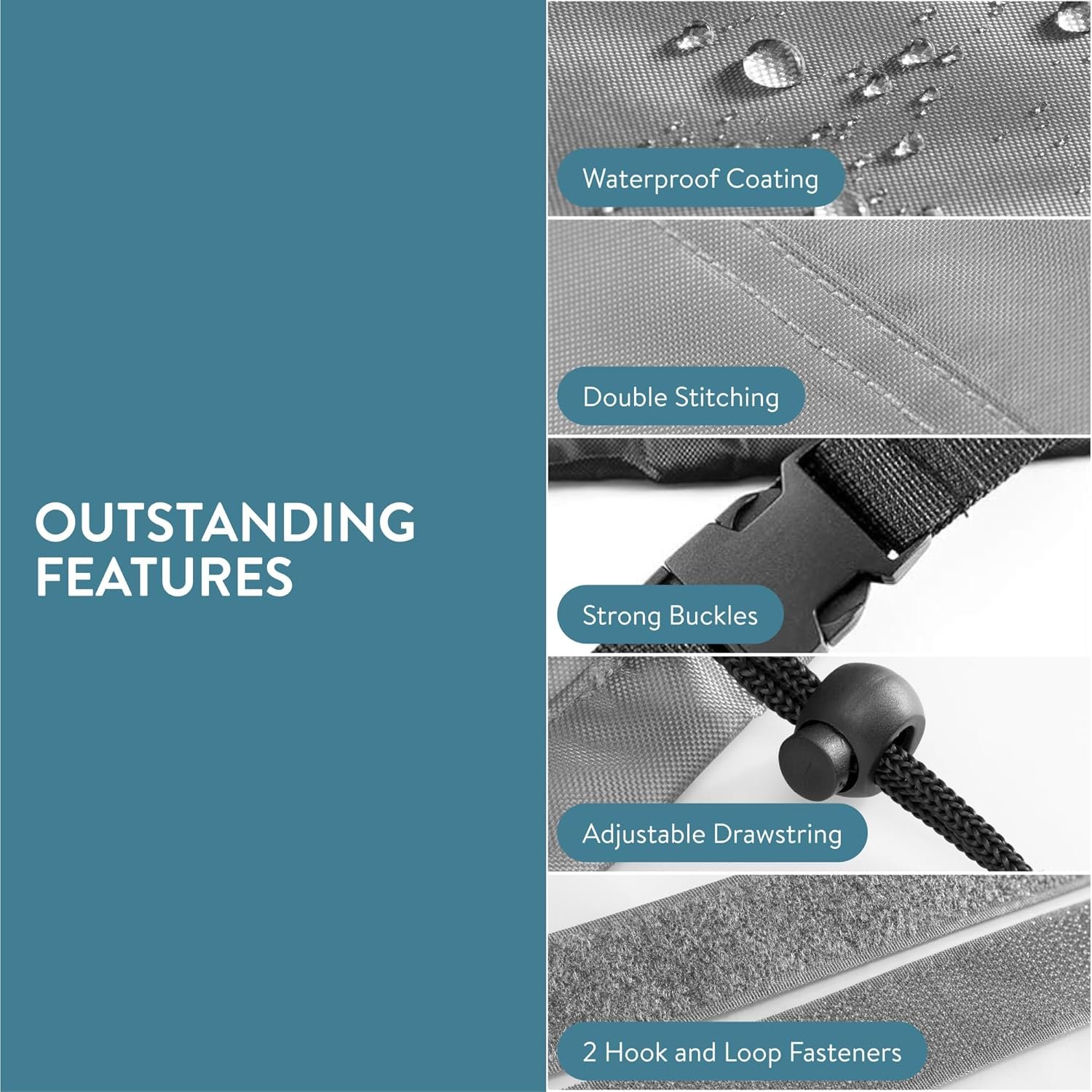 Οι δυνατές πόρπες και τα κουμπώματα με Velcro, σε συνδυασμό με το ρυθμιζόμενο κορδόνι περίσφιξης, εξασφαλίζουν την τέλεια εφαρμογή ακόμη και σε συνθήκες ισχυρού ανέμου. Είναι ιδανικό για τραπέζια, καρέκλες, μπάρμπεκιου, ή έπιπλα μπαλκονιού, ώστε να σας προσφέρει μια ευέλικτη λύση για κάθε εξωτερικό χώρο. Τέλος, μαζί του περιλαμβάνεται και μια πρακτική θήκη αποθήκευσης, για εύκολη μεταφορά και οργάνωση.
