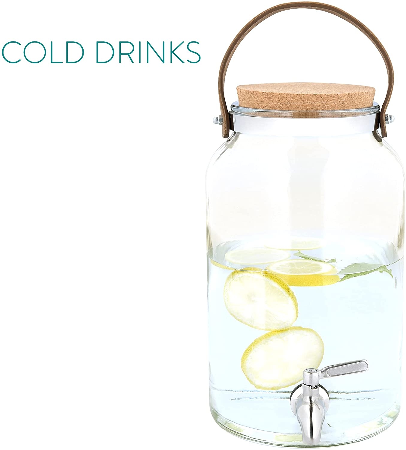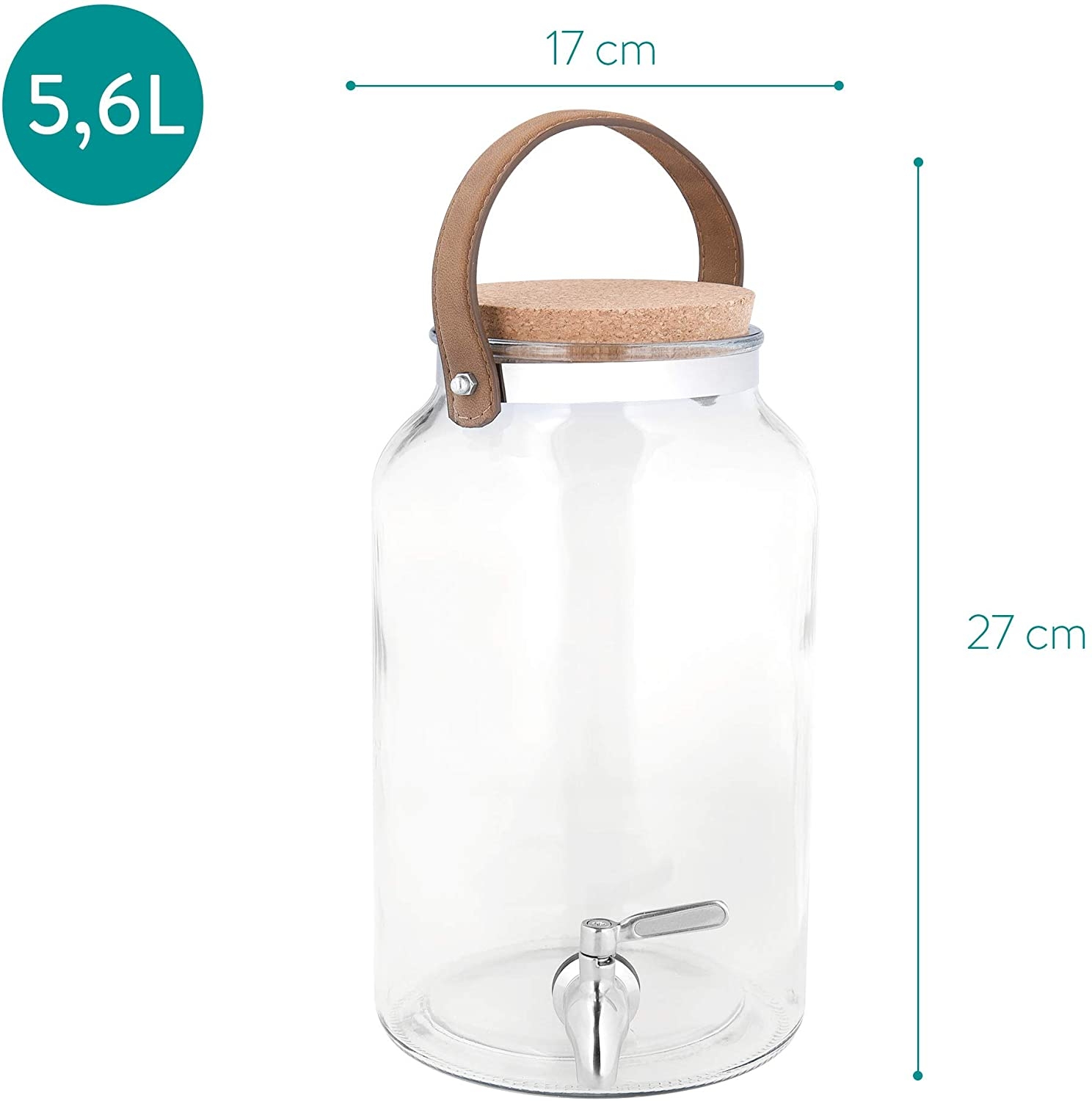 Με τον διανεμητή ποτού της Navaris, μπορείτε να προσφέρετε στους επισκέπτες σας σπιτικά ποτά, όπως παγωμένο νερό, λεμονάδα, κοκτέιλ, ζεστό κρασί ή μηλίτη και πολλά άλλα. Μπορείτε να προσθέσετε παγάκια ή φρούτα, ανοίγοντας το καπάκι του διανεμητή. Το πρακτικό πώμα φελλού κλείνει με ασφάλεια το διανομέα χυμού, έτσι τα έντομα δεν έχουν καμία πιθανότητα εισέλθουν μέσα το καλοκαίρι.