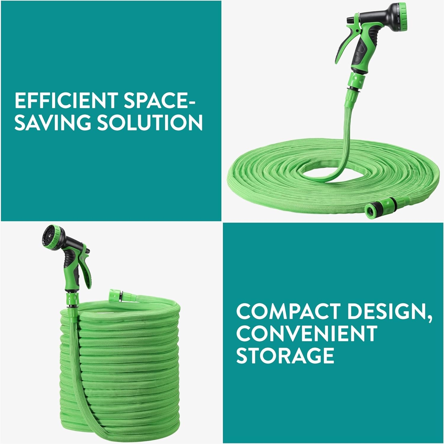 Navaris Flexible Garden Hose - Επεκτεινόμενο Εύκαμπτο Λάστιχο Κήπου με 10 Λειτουργίες Ψεκασμού - 11.25m - 22.5m - Green (61949.03)