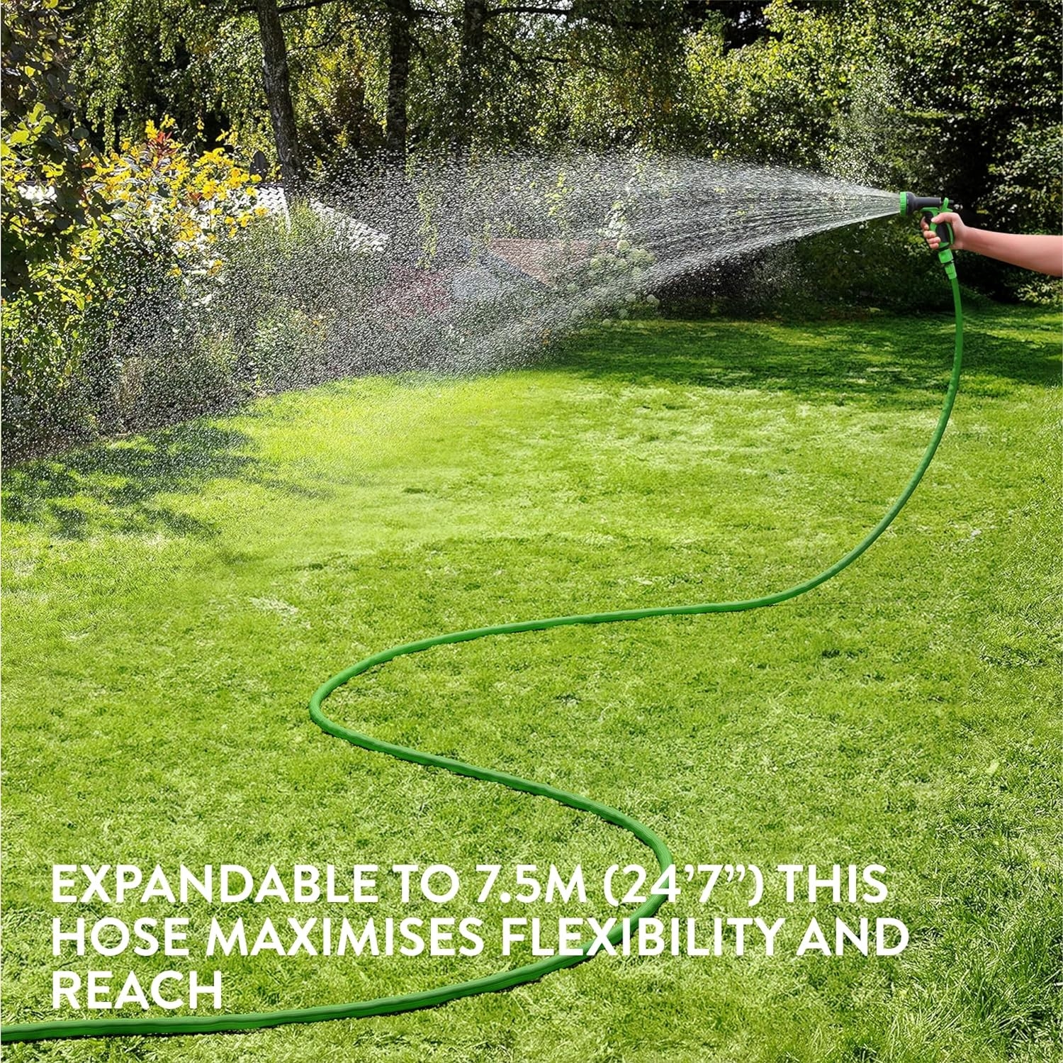Το επεκτεινόμενο εύκαμπτο λάστιχο κήπου της Navaris είναι ιδανικό για να απολαύσετε την κηπουρική σας και όχι μόνο! Ποτίσετε φυτά, λουλούδια και το γκαζόν στον κήπο σας, ή πλύντε το αυτοκίνητό σας, το οποίο βρίσκεται πολύ μακριά από τη βρύση.