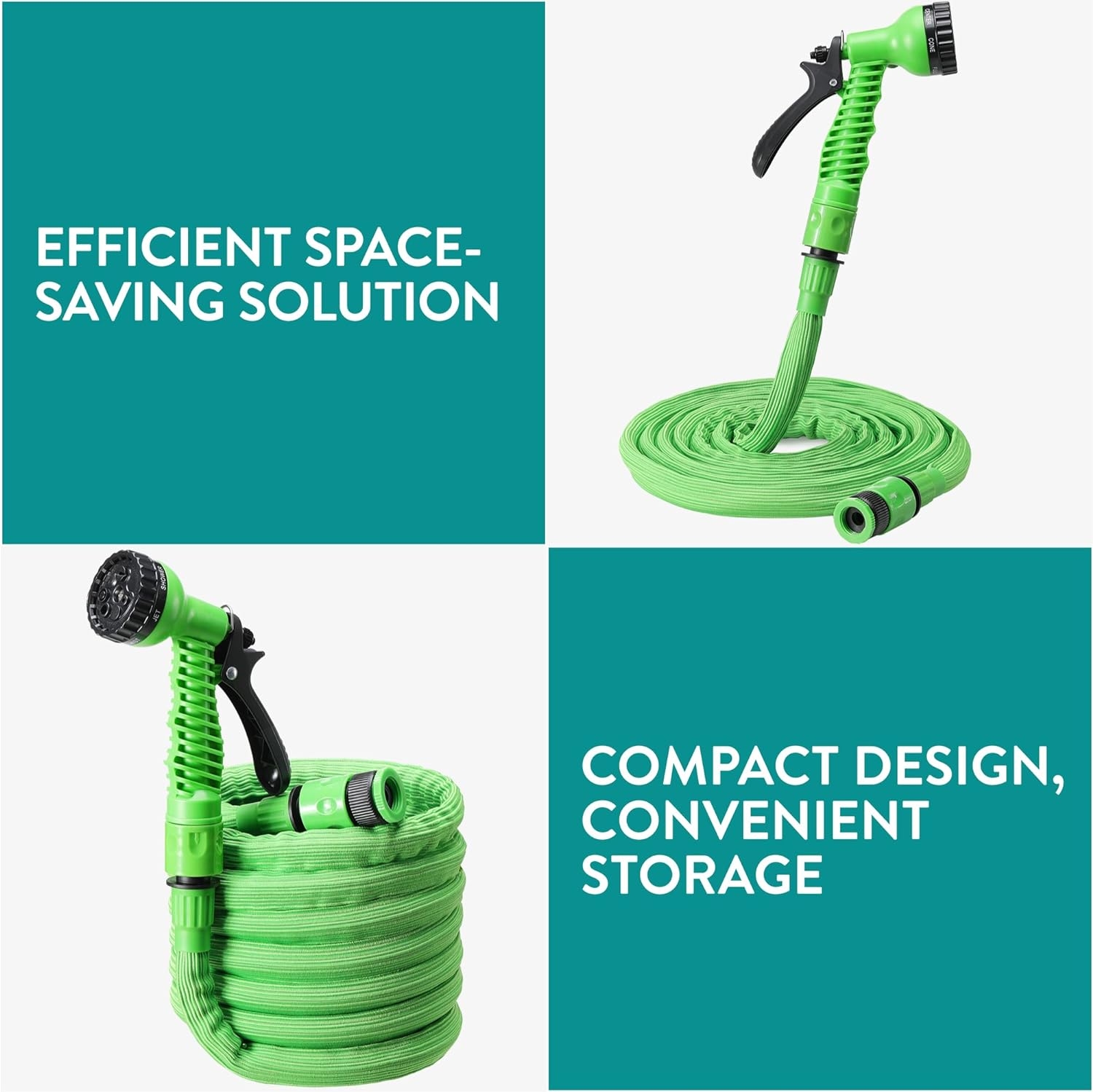 Το επεκτεινόμενο εύκαμπτο λάστιχο κήπου της Navaris, με 7 λειτουργίες ψεκασμού και μήκος 3.75-7.5m, είναι ιδανικό για να απολαύσετε την κηπουρική σας και όχι μόνο! Ποτίσετε φυτά, λουλούδια και το γκαζόν στον κήπο σας, ή πλύντε το αυτοκίνητό σας, το οποίο βρίσκεται πολύ μακριά από τη βρύση.