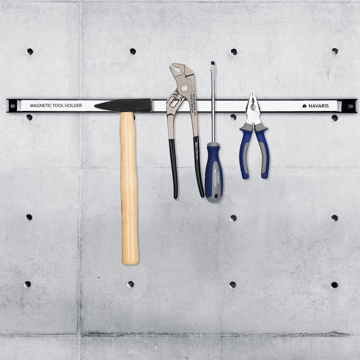 Εξοικονομήστε χώρο στο γκαράζ ή στην αποθήκη σας με τις ισχυρές μαγνητικές ράγες συγκράτησης εργαλείων της Navaris. Αν το γκαράζ ή το εργαστήριό σας είναι ακατάστατο εξαιτίας όλων των διάσπαρτων εργαλείων σας, ήρθε η μαγνητική μπάρα της Navaris, με μήκος περίπου 60 cm, ώστε να οργανώσετε σε ένα βολικό μέρος όλα σας τα εργαλεία.