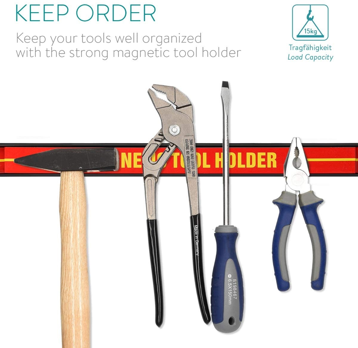 Εξοικονομήστε χώρο στο γκαράζ ή στην αποθήκη σας με τις ισχυρές μαγνητικές ράγες συγκράτησης εργαλείων της Navaris. Αν το γκαράζ ή το εργαστήριό σας είναι ακατάστατο εξαιτίας όλων των διάσπαρτων εργαλείων σας, ήρθε η μαγνητική μπάρα της Navaris, με μήκος περίπου 30 cm, ώστε να οργανώσετε σε ένα βολικό μέρος όλα σας τα εργαλεία.