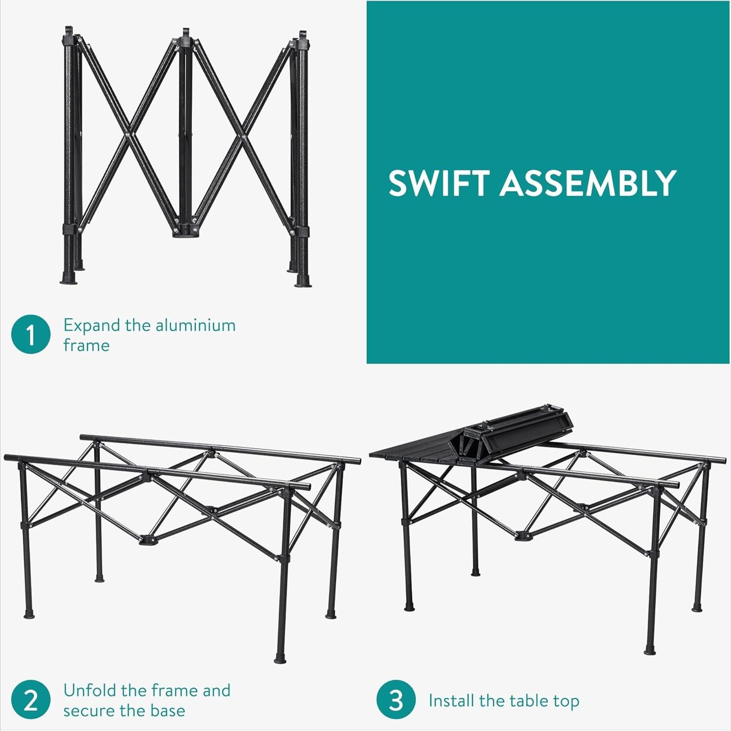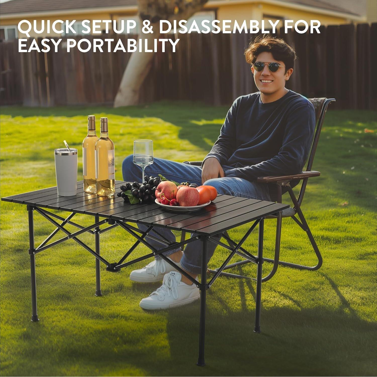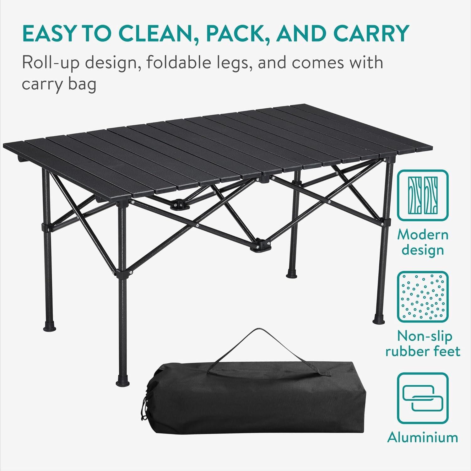 Διαθέτει ρυθμιζόμενο ύψος και αντιολισθητικά πόδια, ενώ εκτός από εξωτερική χρήση είναι κατάλληλο και για εσωτερική χρήση. Αποτελεί ένα τραπέζι που δεν πρέπει να λείπει από κανένα σπίτι ή ταξίδι ώστε να είσαστε πάντα έτοιμοι και οργανωμένοι!