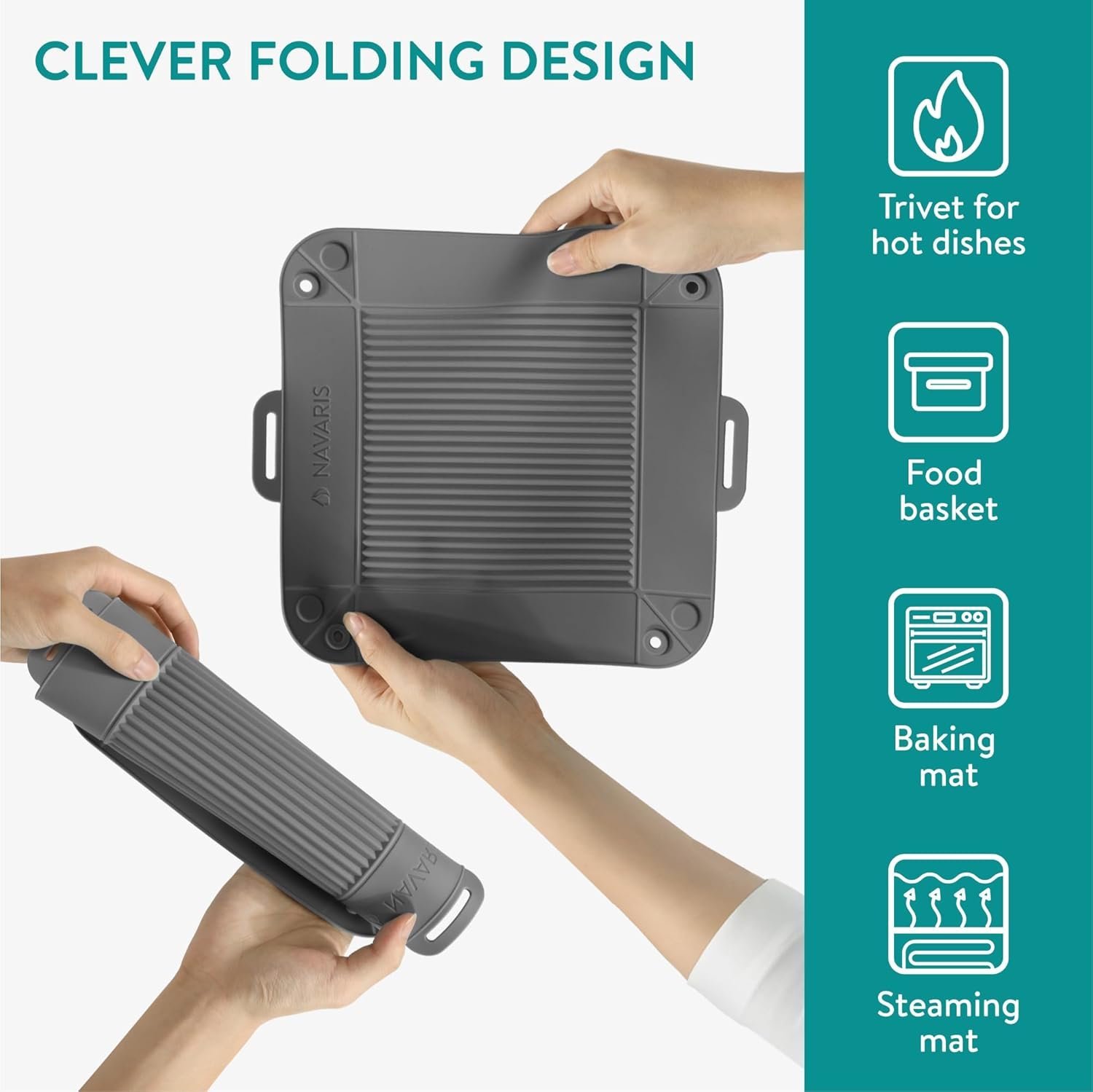 Διαθέτει έναν αναδιπλούμενο, έξυπνο και πολυλειτουργικό σχεδιασμό και μπορείτε να την χρησιμοποιήσετε ως καλάθι τροφίμων, για να αποθηκεύσετε τα τρόφιμα σας ή να τα σερβίρετε, ή ταψί ψησίματος για air fryer ή φούρνο, ταψί ατμού ή ακόμη και ως βάση για ζεστά σκεύη, για να προστατεύει τις επιφάνειες σας. Είναι κατάλληλη για στρογγυλές ή τετράγωνες φριτέζες αέρα, φούρνους, ακόμη και φούρνους μικροκυμάτων, γεγονός που σας προσφέρει απόλυτη ευελιξία στην κουζίνα.